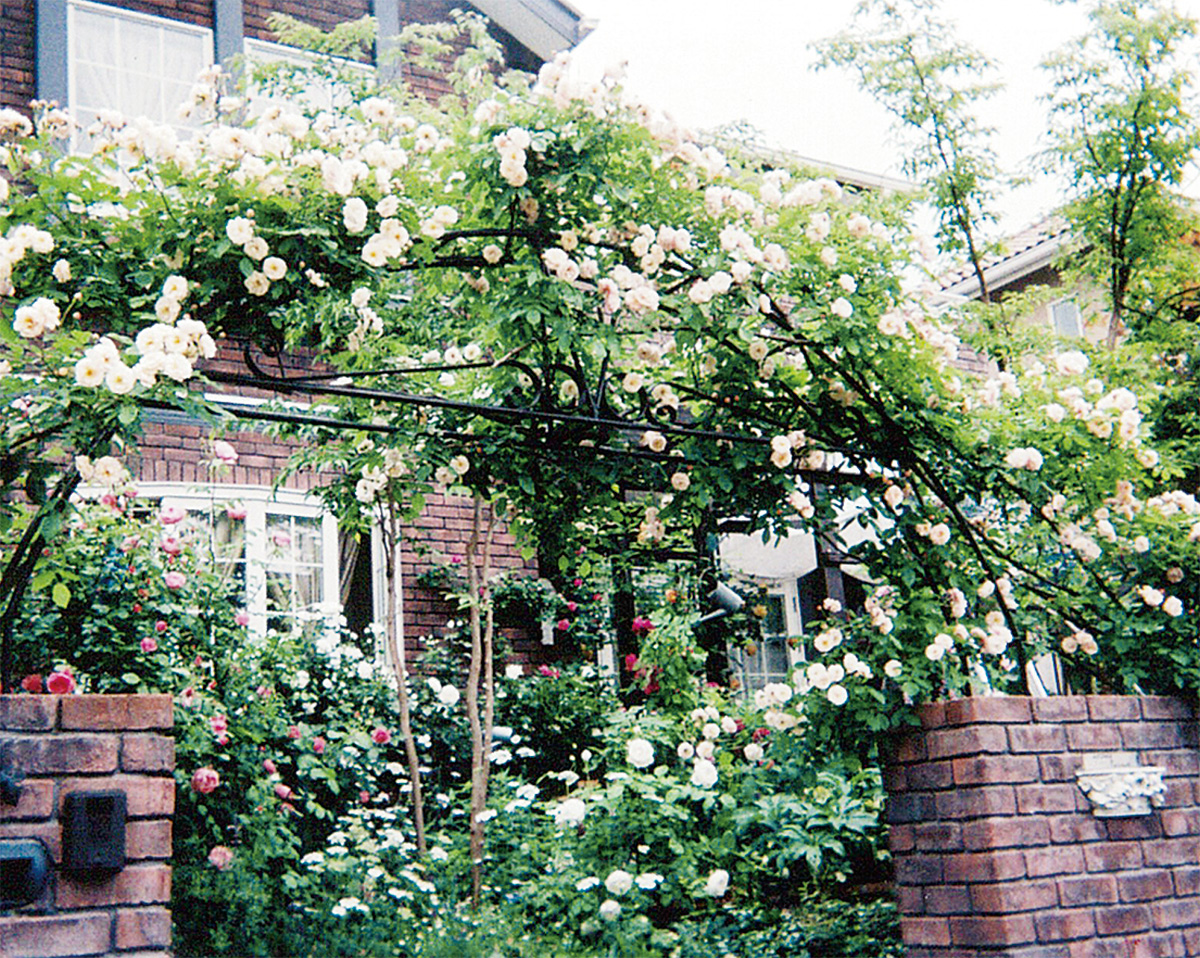昨年、八王子交通事業株式会社(旭町)が企画した、個人のバラ庭園を巡る見学ツアーで人気を集めた園のひとつが、七国の穂坂八重子さん邸だ。ピンクや白色の、オールドローズやイングリッシュローズなどが来訪者の目を楽しませた。