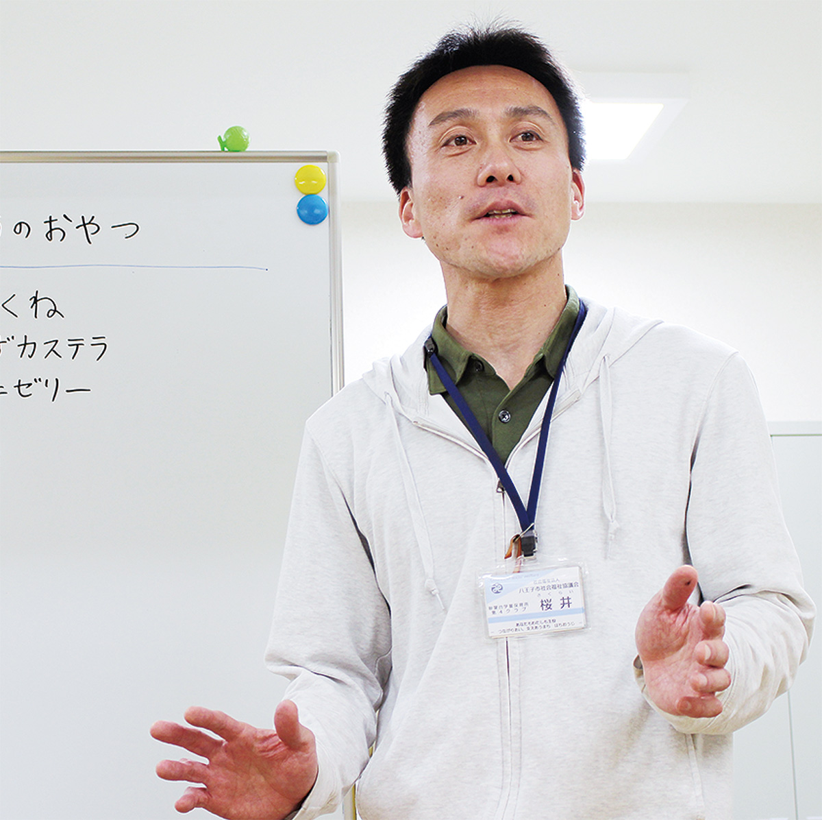 クラブの桜井傑施設長。遊びを通して、子どもたちに「ルールを守る」「仲間と協力し合う」ことなどの大切さを伝えていきたいのだという。「約1か月が経過して、子どもたちもこの場所に慣れてきたようです」