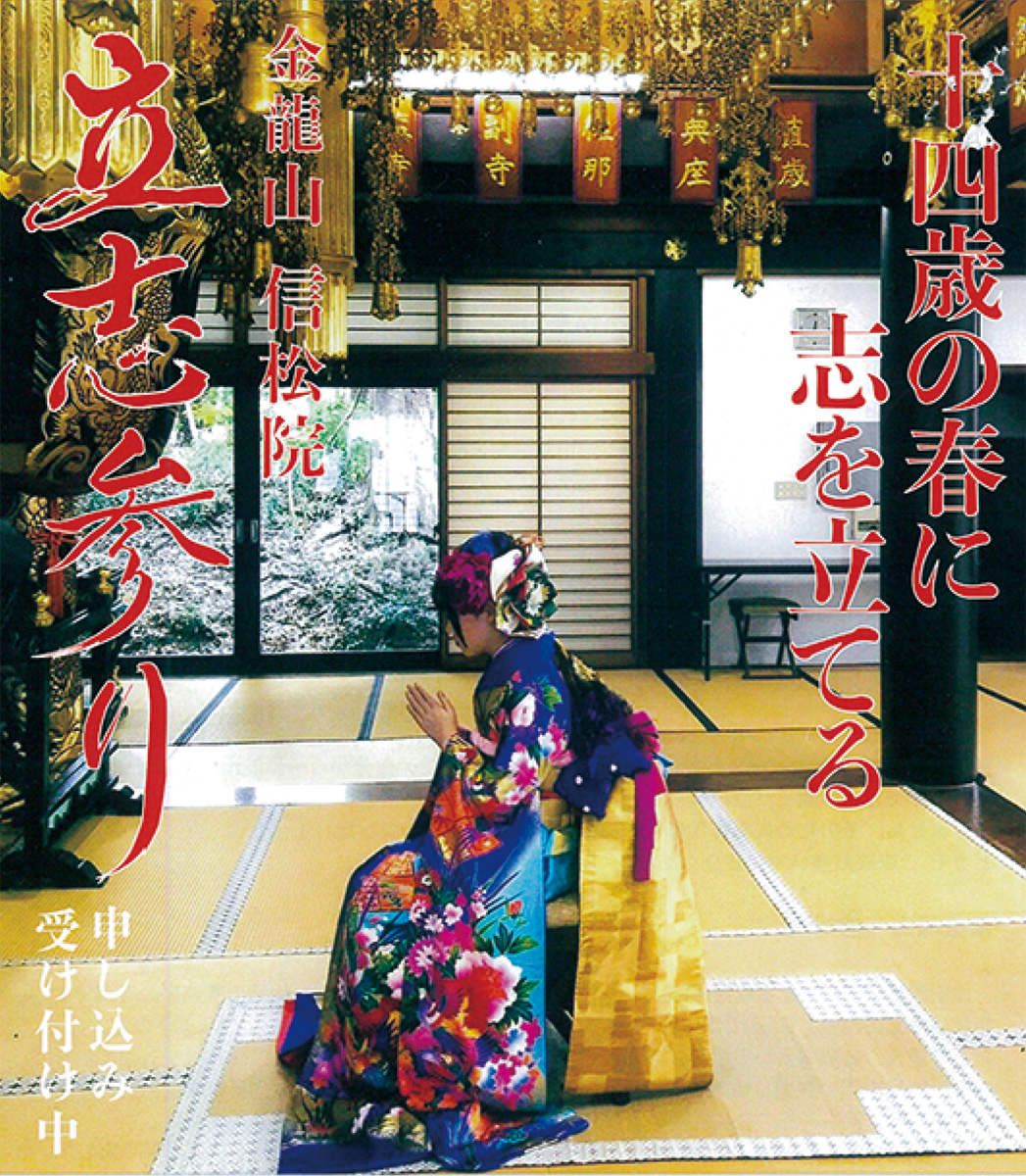 台町にある寺院「信松院(しんしょういん)」で19日(日)、14歳の男女を対象とした「立志式」(立志参り)が開催される。