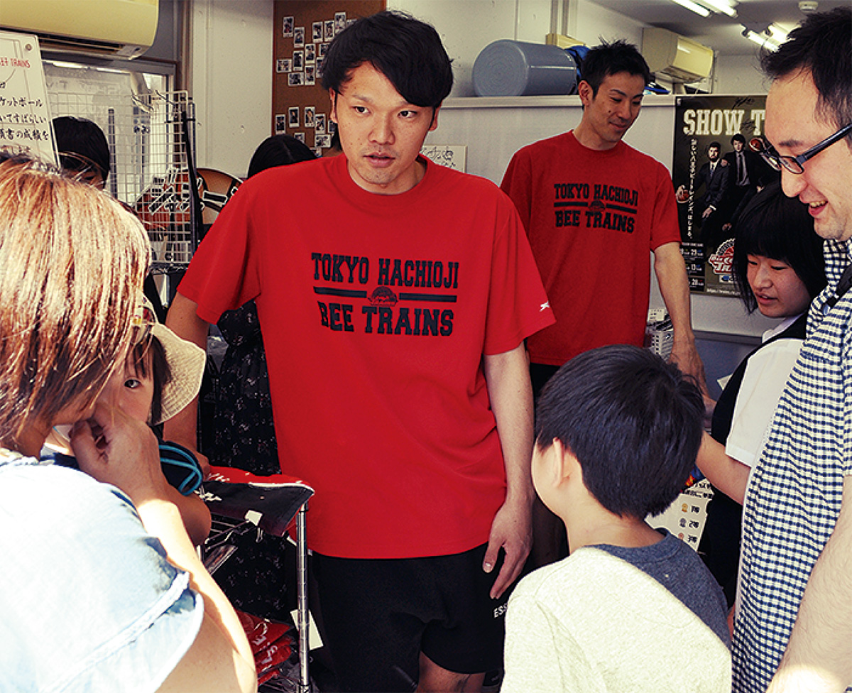 2018-19シーズンの全日程を終えたプロバスケ東京八王子ビートレインズの選手が5月25、26日、子安町のオフィシャルショップ「トレインズステーション」で「1日店長」となり店舗へ訪れたファンらと交流した。