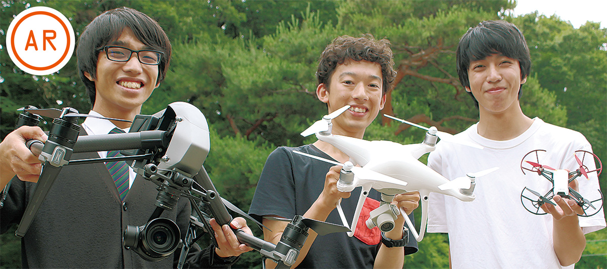 依頼を受け、編集した「作品」を発注者に納品することにやりがいを感じているという、長坂優輝さん(2年)は「ドローンは人に感動を与えられるもの」と語り、将来は操縦者として防災活動に関わりたい、と話す。