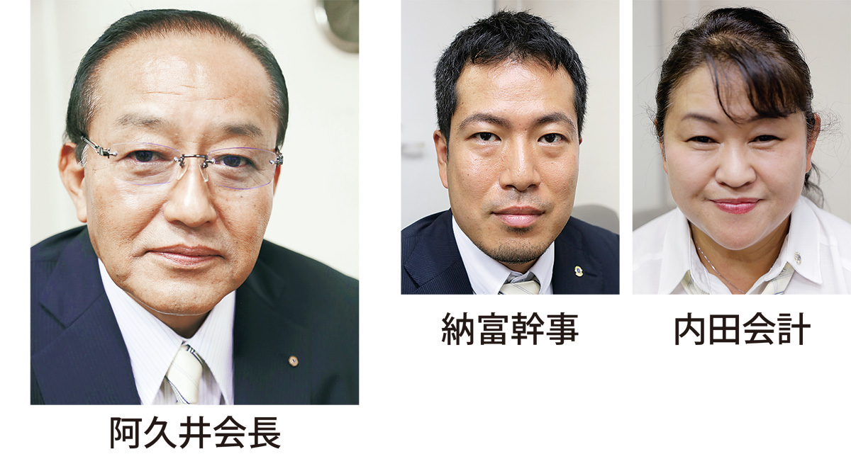 ●阿久井会長「女性2人の執行部参加も初めて。真面目に正直を信条に精進します」