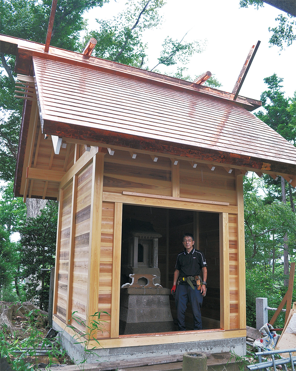 主な工事を担当したのは、寺院建築に携わった実績のある大工の森上秀男さん(千人町)だ。享保年間(1716〜1736年)から続く大工一家で、伝統木造技術の習得にも意欲を持つ。富田さんは縁があって森上さんの活躍を知り今回依頼した。「わざわざ奈良の木を使うなどとても大切に造ってくれた。いい仕事ぶりにみんなびっくりしています」と富田さん。森上さんは「寺の仕事をした経験が活きた。皆さんの気持ちをのせて造りました」と竣工を喜ぶ。