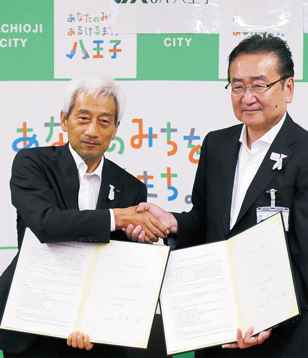 会見と同日、JA八王子との「都市農業の振興と都市農地の保全」に関する協定を結んだ。一丸となって農家の高齢化に伴う担い手不足に取り組むためのもの。この一環として、市とJAが共同で9月と10月に生産緑地の所有者を対象とした説明会を実施する。生産緑地は2022年に指定期間が最初に終わりを迎えるため、その再指定を円滑に受けられるようにすることが目的。ほかにも市の農業研修事業にJA組合員を派遣することなども盛り込まれた。