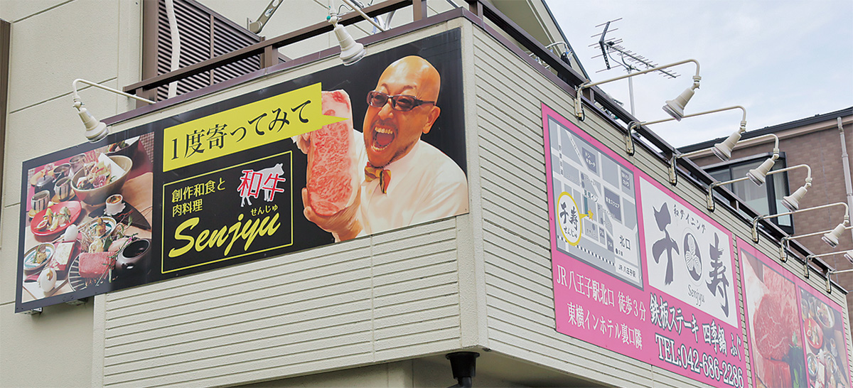 石井和得(かずのり)社長が偶然、テレビで知り合いの同級生(仁平さん)が映っているのを見かけ「宣伝ボーイにしたい」と、同社にスカウトしたそう。それから仁平さんは、建築現場で働きながら、同社が経営する飲食店の看板にしばしば登場している。