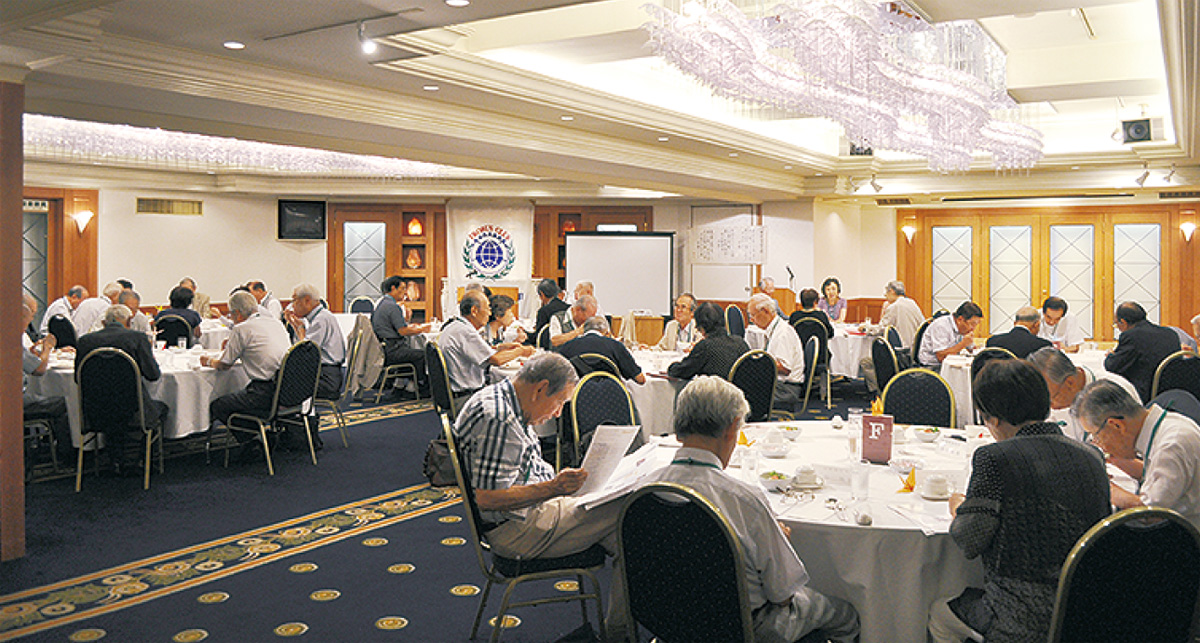 「2時間も前に来る人もいます」。毎月、八日町の八王子エルシィで開かれる例会。会場は早くから開放され会員らがコーヒーを片手に談笑する。この開始前のコーヒーサービスは飯田さんが会員の交流を深めるために始めたもの。「一人一人の笑顔が素敵に輝いて。素敵なプロバスライフを」――。そんな今年度のテーマの通り、活動を楽しみに訪れた会員たちの笑顔が場内に溢れていた。