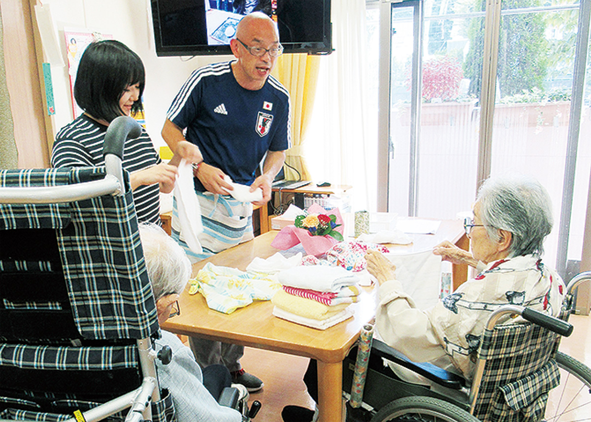 入居する皆さんが穏やかな表情を浮かべている!この日に限らず定期的に施設内外でイベントを開催し、入居者の方に季節感を味わってもらえるようにしているそう。「アットホームなところが当施設の一番の特徴なんです」とホーム長の大塚仁史さん。ただ、現在は介護職員や看護師が不足しているんだよね、とも。「ありがとう」って感謝と元気をもらえるお仕事。オススメです。