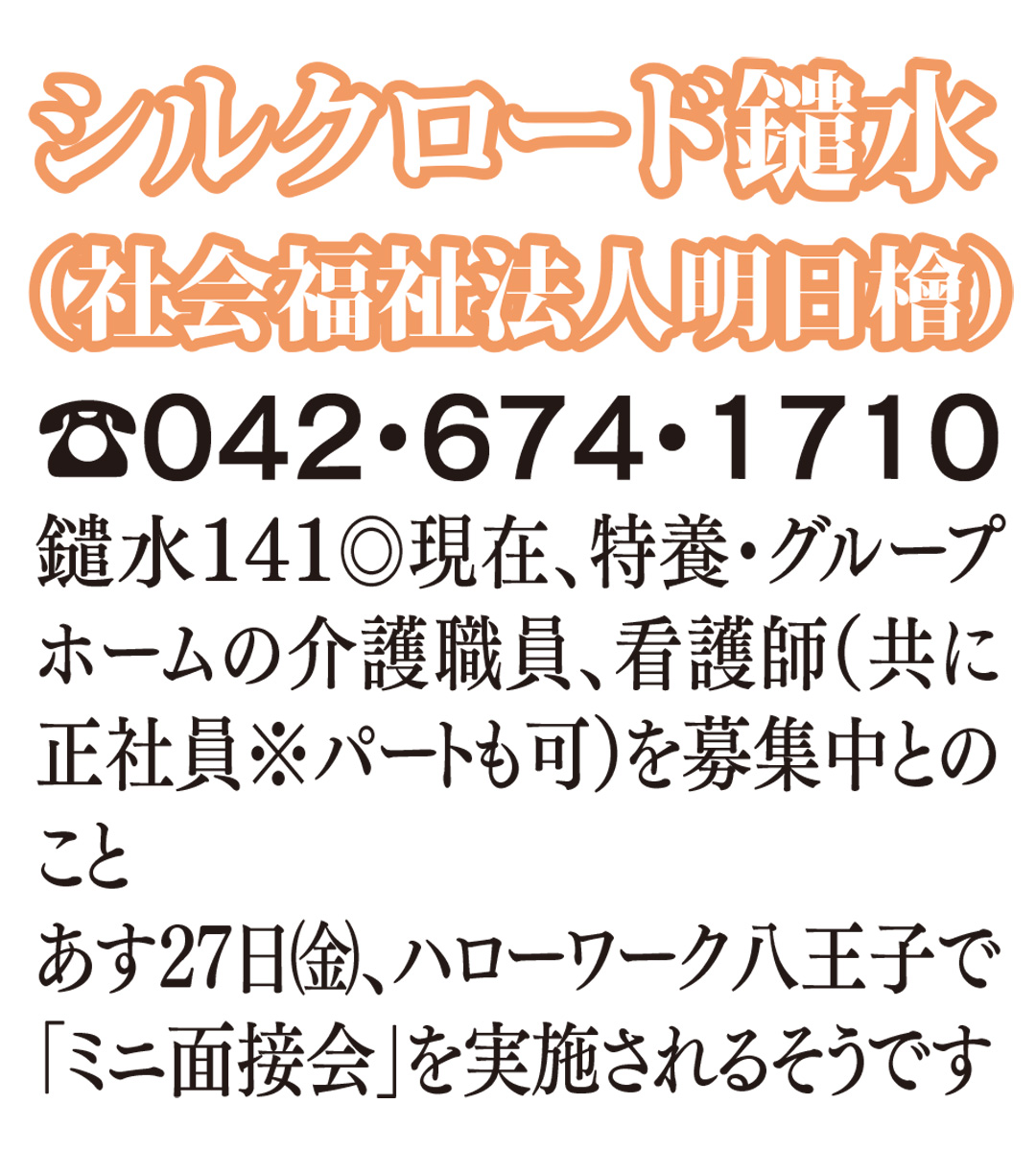 鑓水には高齢者のための施設が多いんです。そのなかの一つが、ユニット型の特養とグループホームを運営しているシルクロード鑓水(社会福祉法人明日檜)さん。お伺いすると敬老の日に合わせた催しを開催されていました。