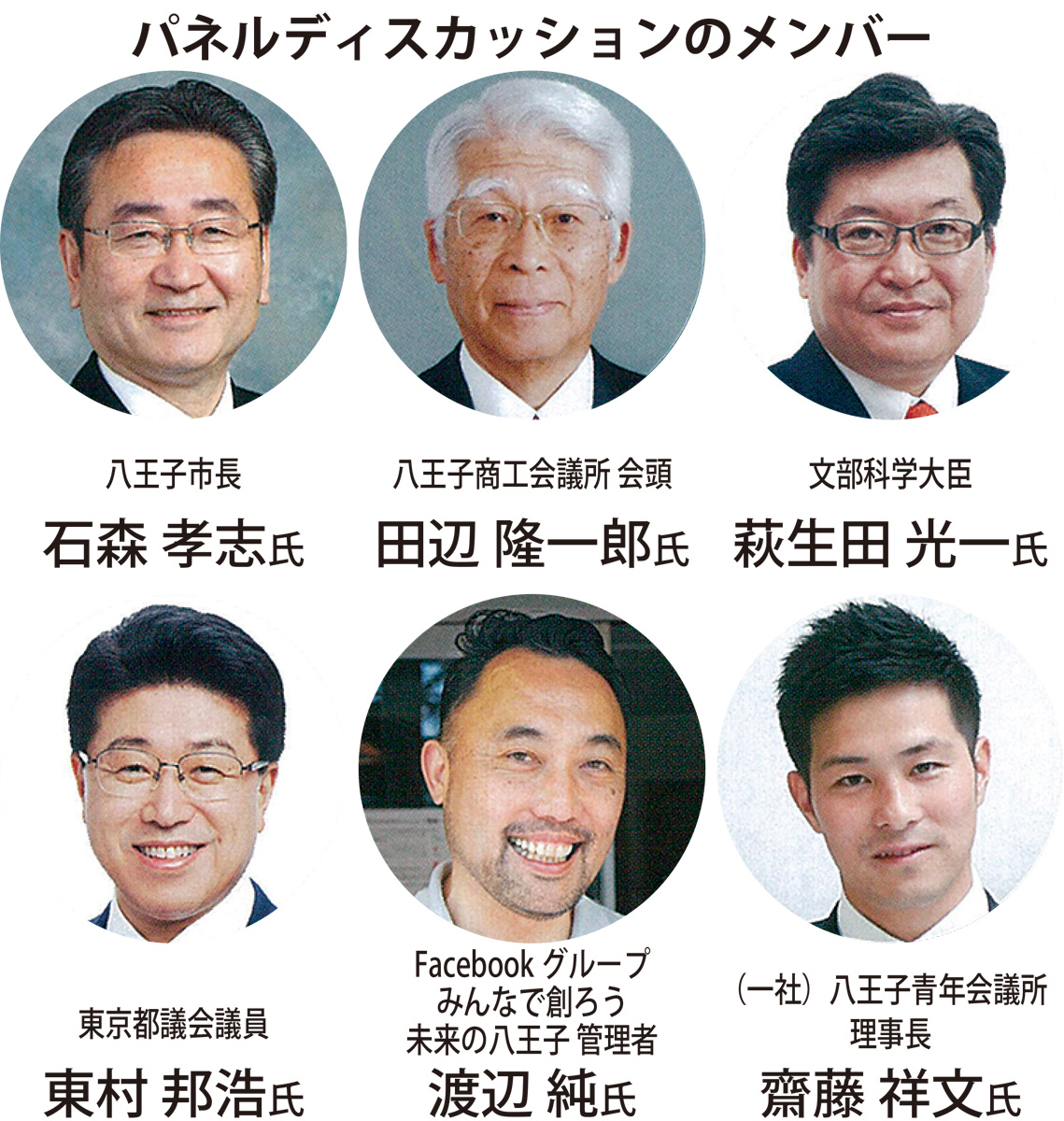 石森孝志市長や萩生田光一大臣らが将来の八王子について語る。テーマは「中町プロジェクト」「産業交流拠点(羽田エアポートライナー)」「医療刑務所移転後用地活用」の3つ。参加者との意見交換の時間も設けられる。企画担当の小山竜太郎さんは「まちのことについて『知らない』『参加していない』を減らし、主体的な市民を増やしたい」と開催の意図を話す。