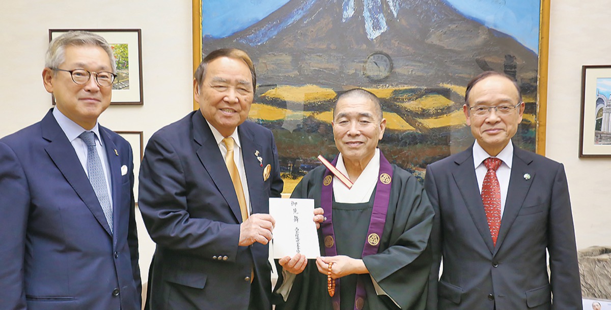 奉仕団体・ライオンズクラブの都内の会員有志で結成する「高尾山環境保全基金協力会」が台風後の先月23日、高尾山薬王院にお見舞金をわたした。同会は登山道のベンチ設置や、トイレの電気代などを負担している。