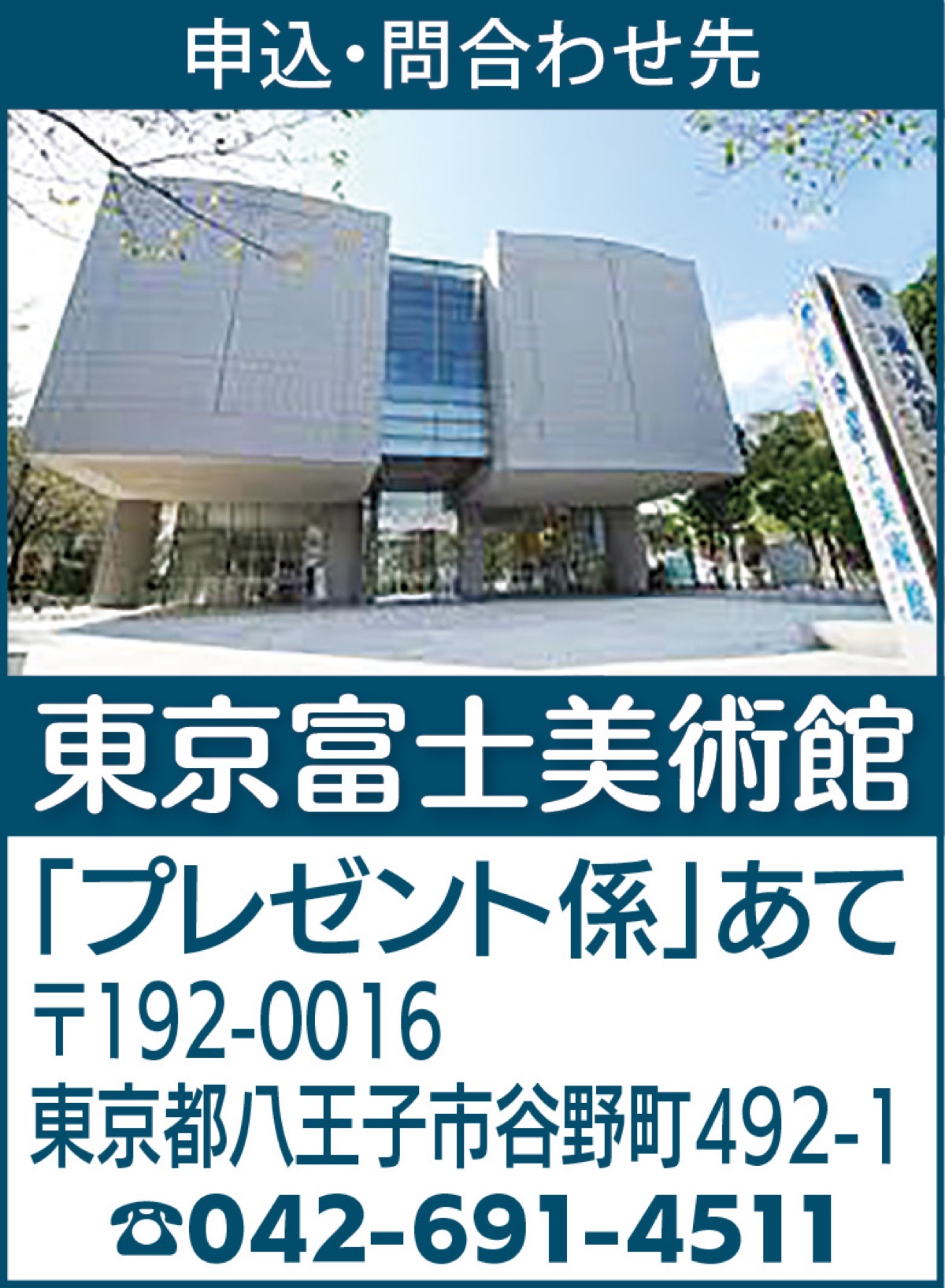 希望者は、はがきに住所・氏名・年齢・職業を明記のうえ、同館(右記)読者プレゼント係まで。11月15日(金)必着。当選の発表はチケットの発送をもって(個人情報は発送時のみに使用)。
