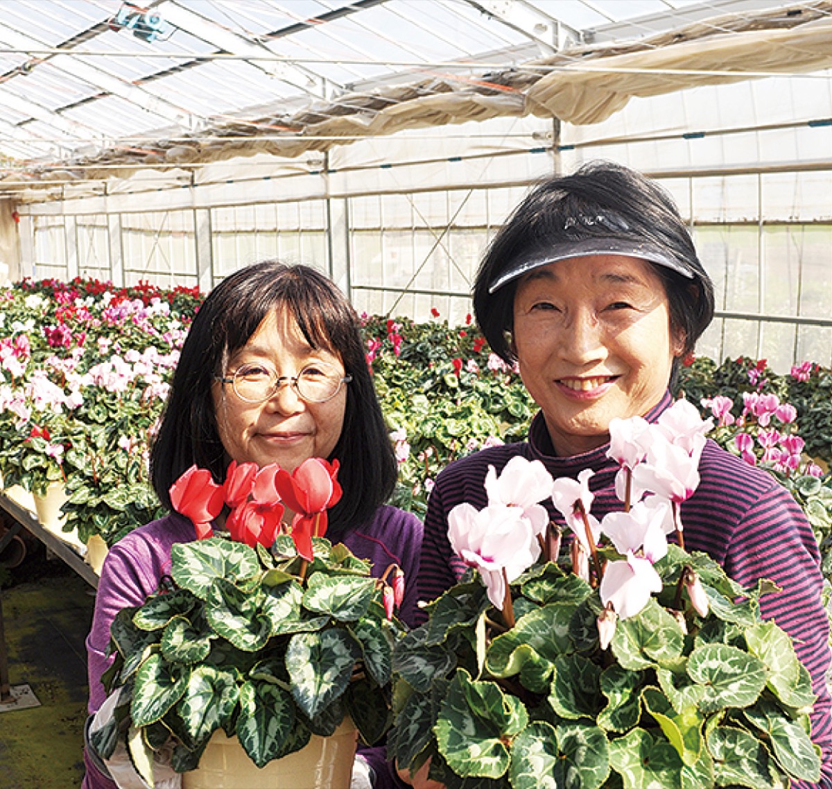 シクラメンを南多摩地域で唯一、生産直売している石川農園(高月町)=外面に関連広告あり=は16日(土)から今年の販売を開始。膨大な数の中から好きな花を選べる。「1鉢で3色楽しめるものもあります」。そう話すのは栽培歴40年以上の代表の石川研さん。説明書と簡易温度計が付くほか電話相談にも対応。また万一、購入直後に弱った際は返品も受け付けているのでギフトにも安心。(問)石川さん【携帯電話】090・2400・2085