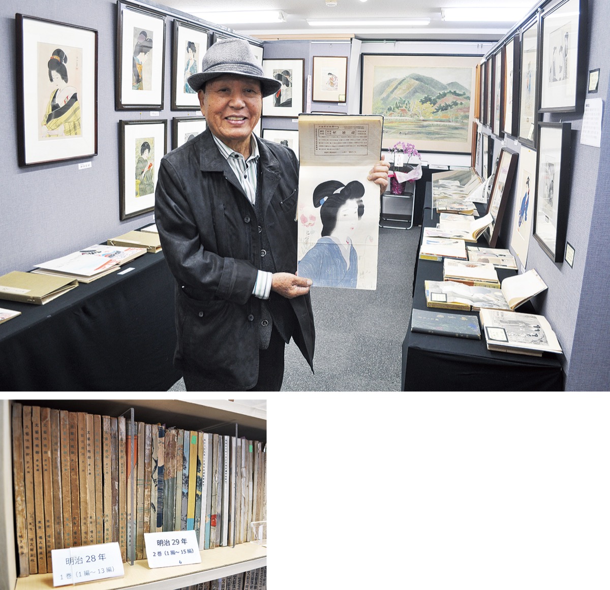 展示物はギャラリーを運営する神邊一善さん((株)かんべ会長)の所有。次回(第3回)は12月13日(金)から来年1月22日(水)(年末年始休みあり)に「口絵でみる【2】」として梶田半古を中心とした作品を披露する。
