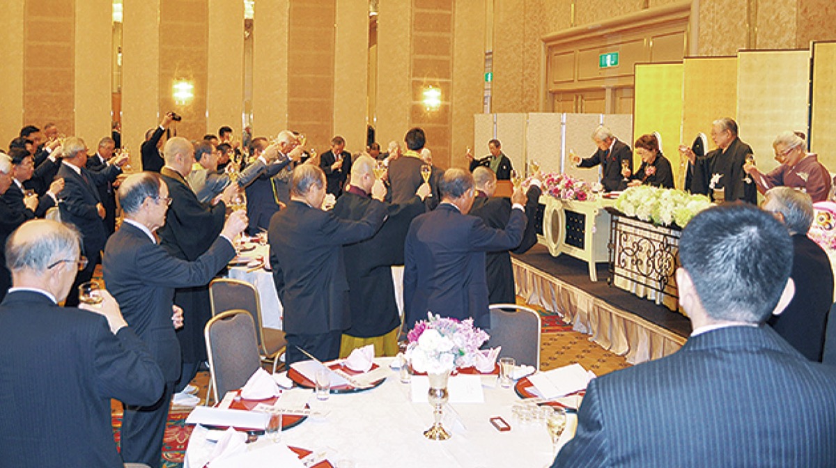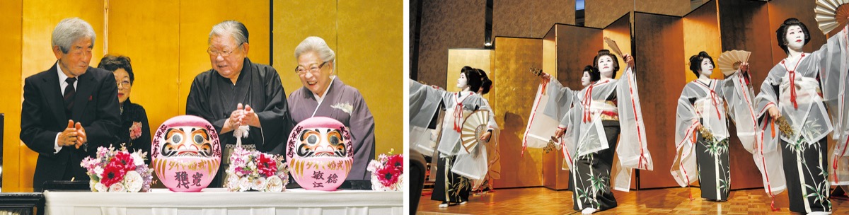 パーティーではまず高尾山薬王院や八王子商工会議所の関係者が祝いの言葉を述べた。稔さんについて「(同院の)筆頭参与など要職に尽力した」と称える一方、「これまで救急車で5回運ばれたがいずれも無事家に帰ってきた」などのエピソードも披露し、会場は笑いに包まれた。