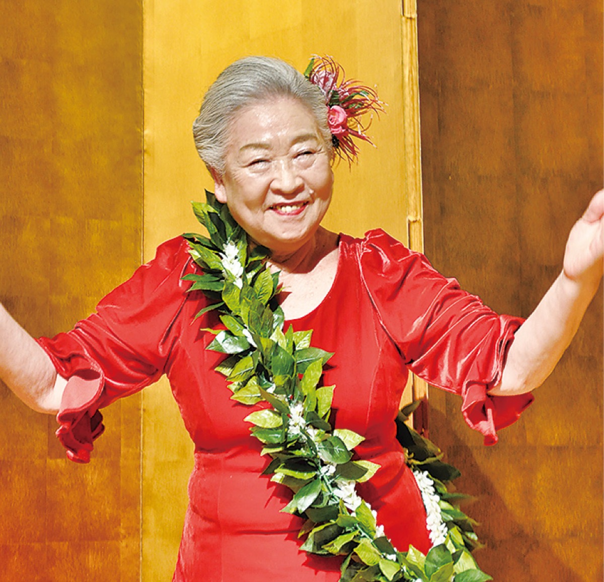パーティーの終盤では敏江さんが20年学んでいるというフラダンスのお披露目も。「家族の前では初めて」だそうで、知人と2曲を踊り満面の笑みを浮かべていた。