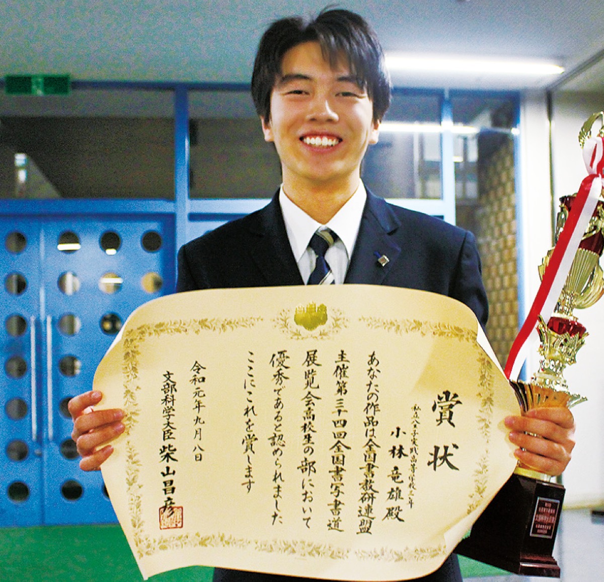 台町・八王子実践高校3年の小林竜雄さんが先ごろ、書道団体「全国書教研連盟」の主催する全国書道展(高校の部)で最高評価となる文部科学大臣賞を受賞した=人物風土記で紹介=。