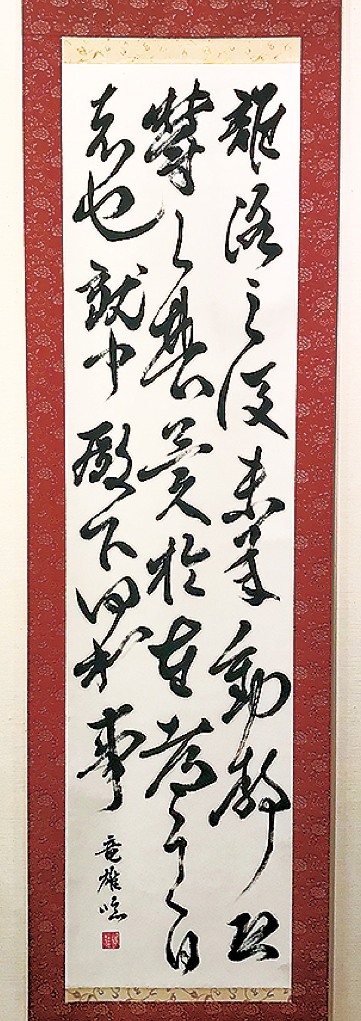 小林さんが作品に選んだのは平安時代に活躍した書家の一文。なめらかさのなかにも力強さが感じられる小林さんの書に注目が集まった=左写真=。小林さんは「本当にうれしい。受賞を聞いた時は大声をあげてしまった」と笑顔。所属する同校書道部の一ノ瀬明美教諭の指導や仲間たちと切磋琢磨してきたことも好結果の要因になったと話している。