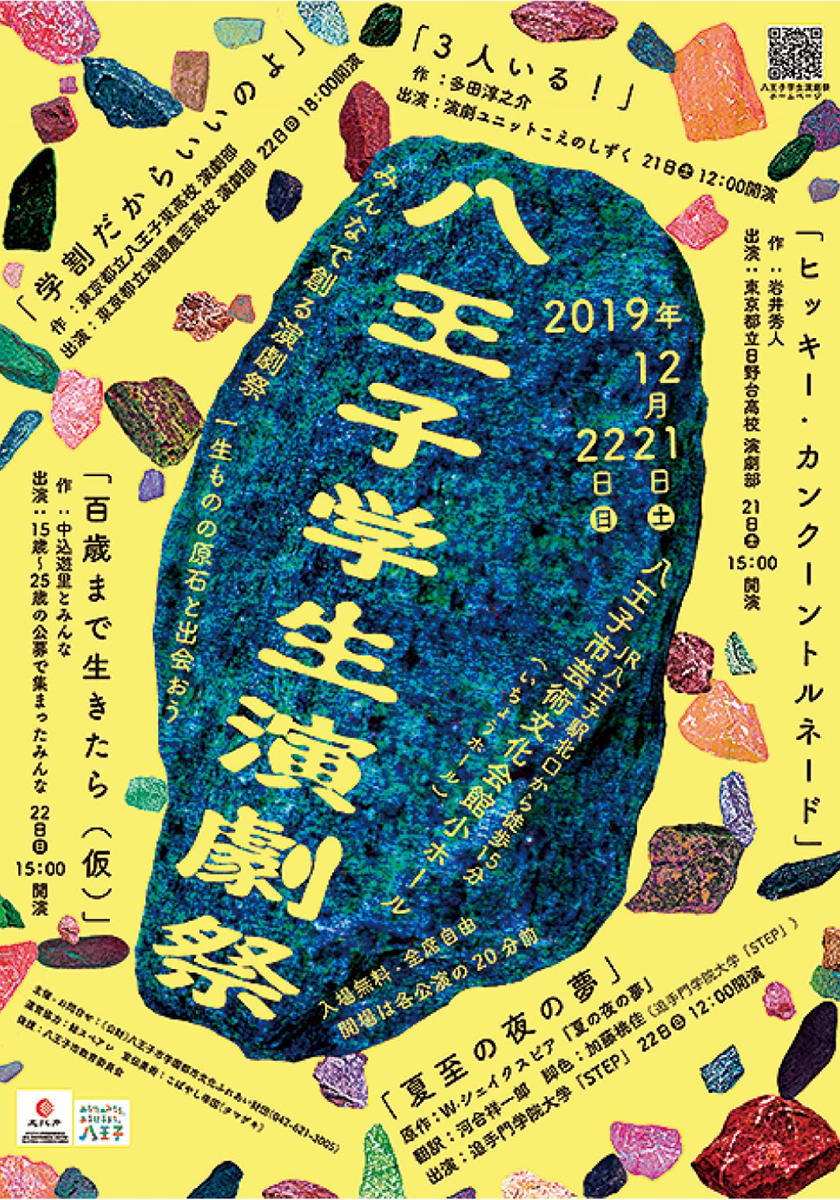 高校生や大学生らが出演する演劇祭が21日(土)・22日(日)、本町のいちょうホールで開かれる。4団体が出演するほか、公募で集まった15〜25歳で構成されるメンバーによる創作劇もある。両日とも正午から(開場は午前11時40分)入場無料。観覧希望者は直接会場へ。(問)八王子市学園都市文化ふれあい財団【電話】042・621・3005