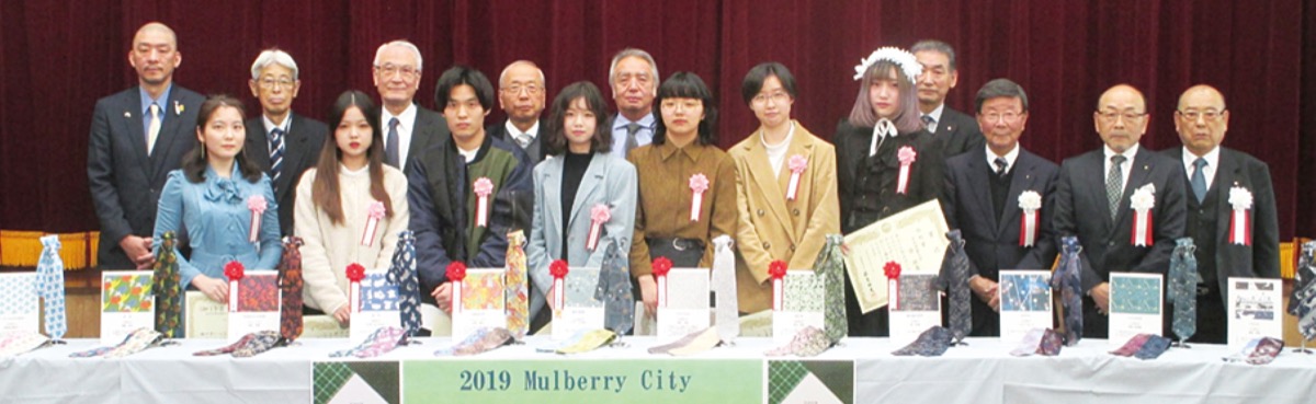 第5回「マルベリー・シティ ネクタイデザインコンペ」の表彰式が12月、八幡町で開催された=写真。