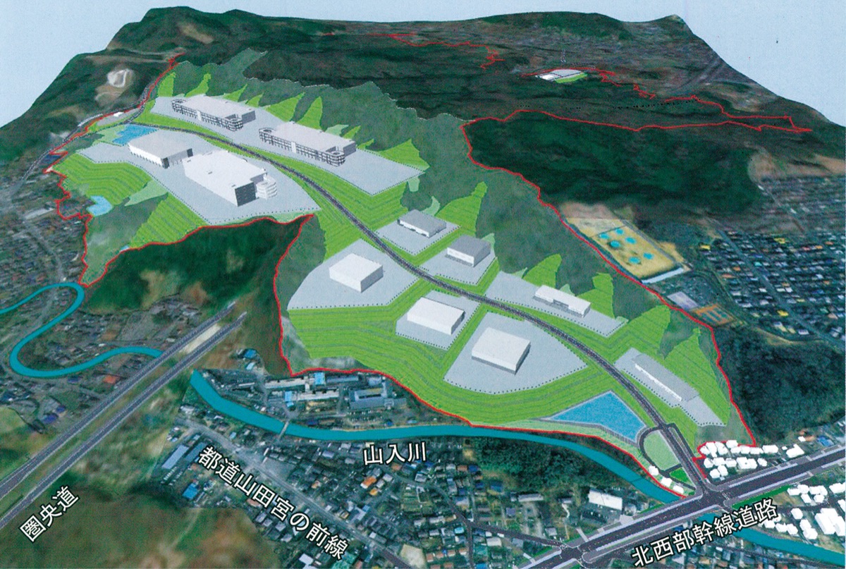 この事業は市の都市計画マスタープラン(15年)に基づき、地域経済の振興や首都圏物流の効率化を目的に行う。圏央道のネットワークを活かした広域物流、中継、地域配送の機能を想定している。計画面積は約172ha。南側1/3が物流工業団地に、北側2/3が自然を残した公園となる。