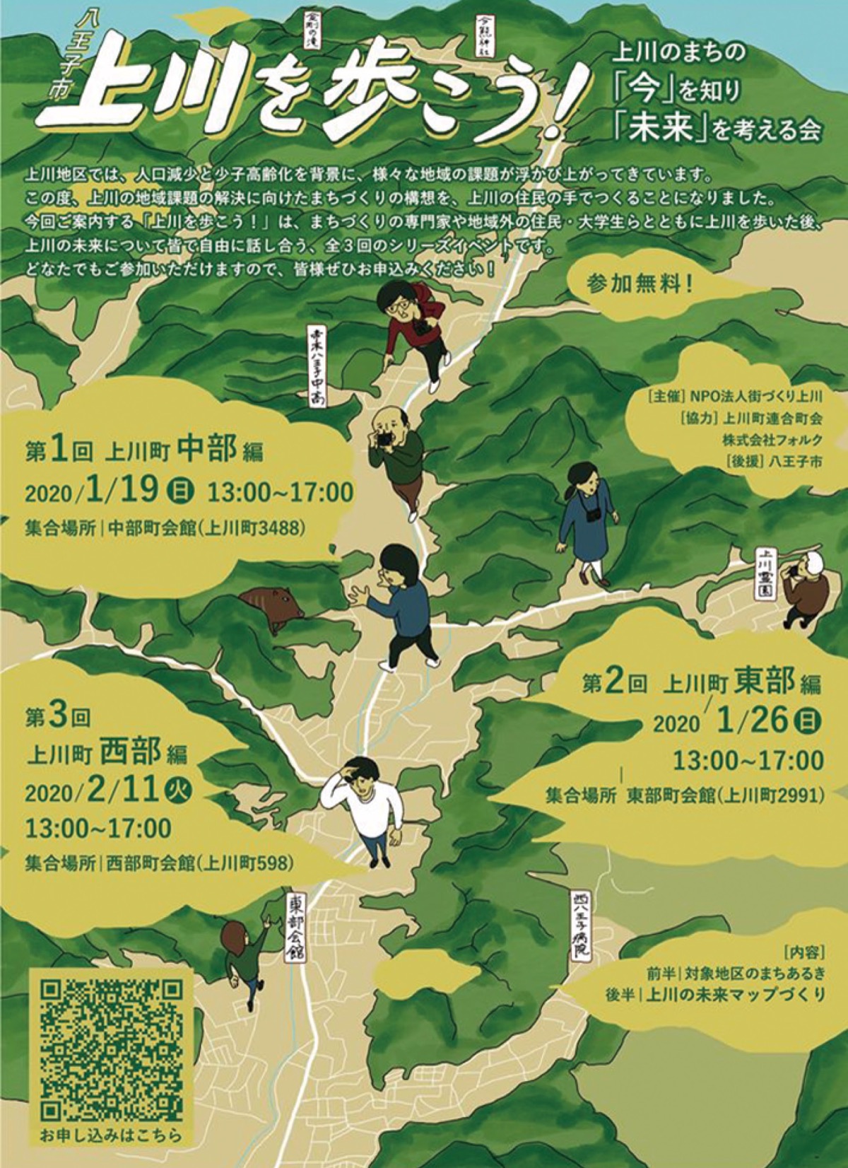 人口減少、少子高齢化が課題である市北西部の「上川地区」ではその解決へむけたまちづくりの構想に取り組んでいる。その一環として、地域を歩き語り合うイベントを企画している。