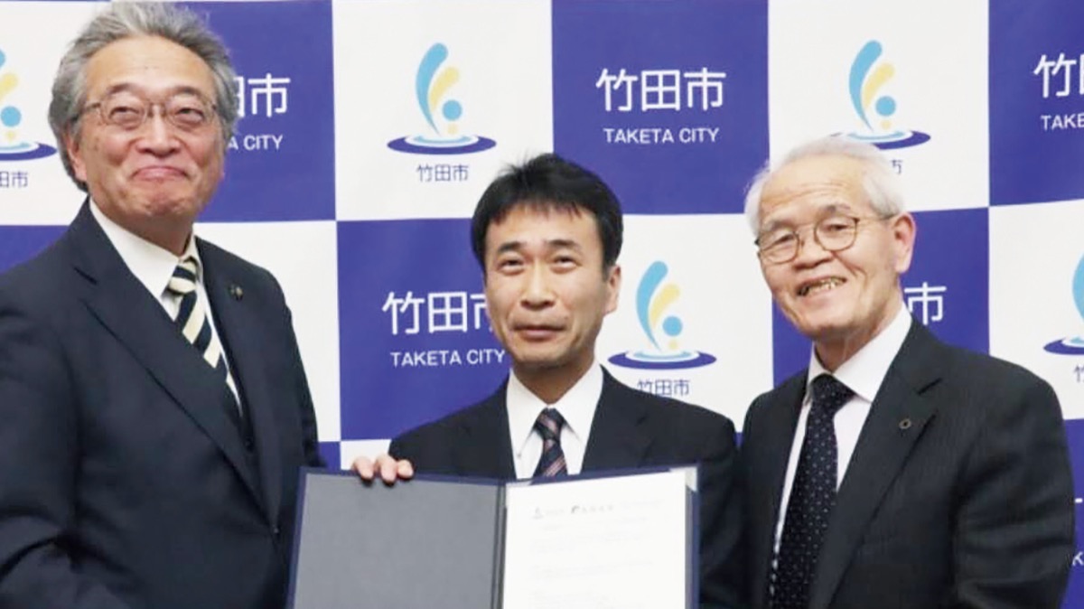 入浴剤メーカー「(株)ホットアルバム炭酸泉タブレット」(東町)の関連会社が、大分県竹田市にある長湯温泉の魅力を発信する産官学連携プロジェクトに参加する。1月末に同市で会見が開かれ、両社の代表を務める小星重治社長が出席し「地方創生の見本を作ってほしい」と挨拶した。