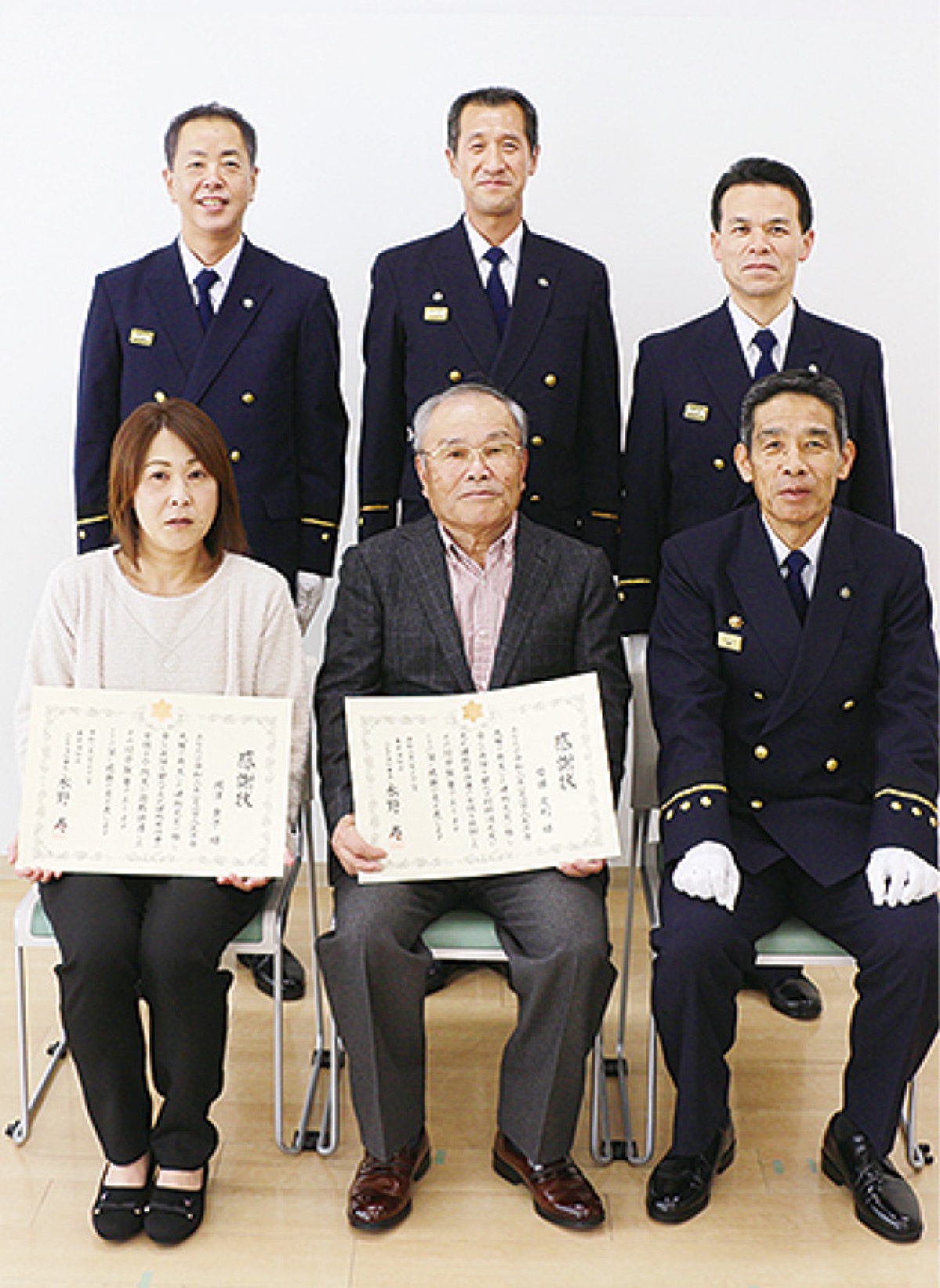 八王子消防署は1月1日に大塚で発生した建物火災に際し、逃げ遅れを救出するとともに初期消火を行い、被害を最小限にとどめた齋藤定利さん、齋藤定一さん、岡澤貴子さんに感謝状を贈呈した。