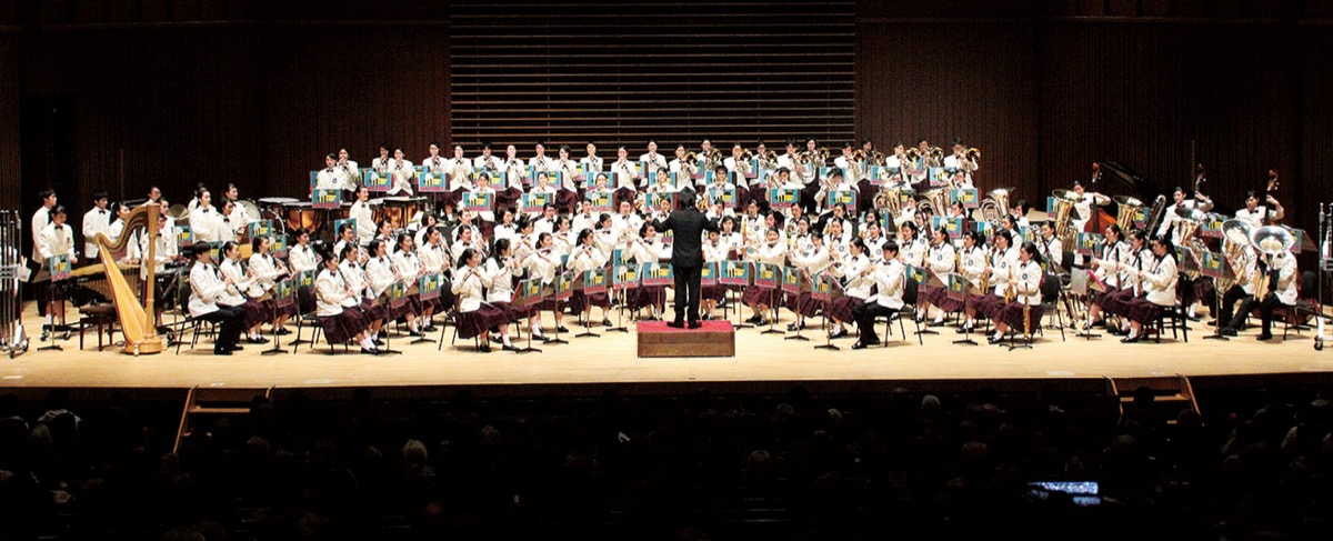 子安町のオリンパスホール八王子で9日、昨秋行われた全日本吹奏楽コンクールで金賞を受賞した都立片倉高校(片倉町)や八王子高校(台町)などが演奏会を開いた=写真。