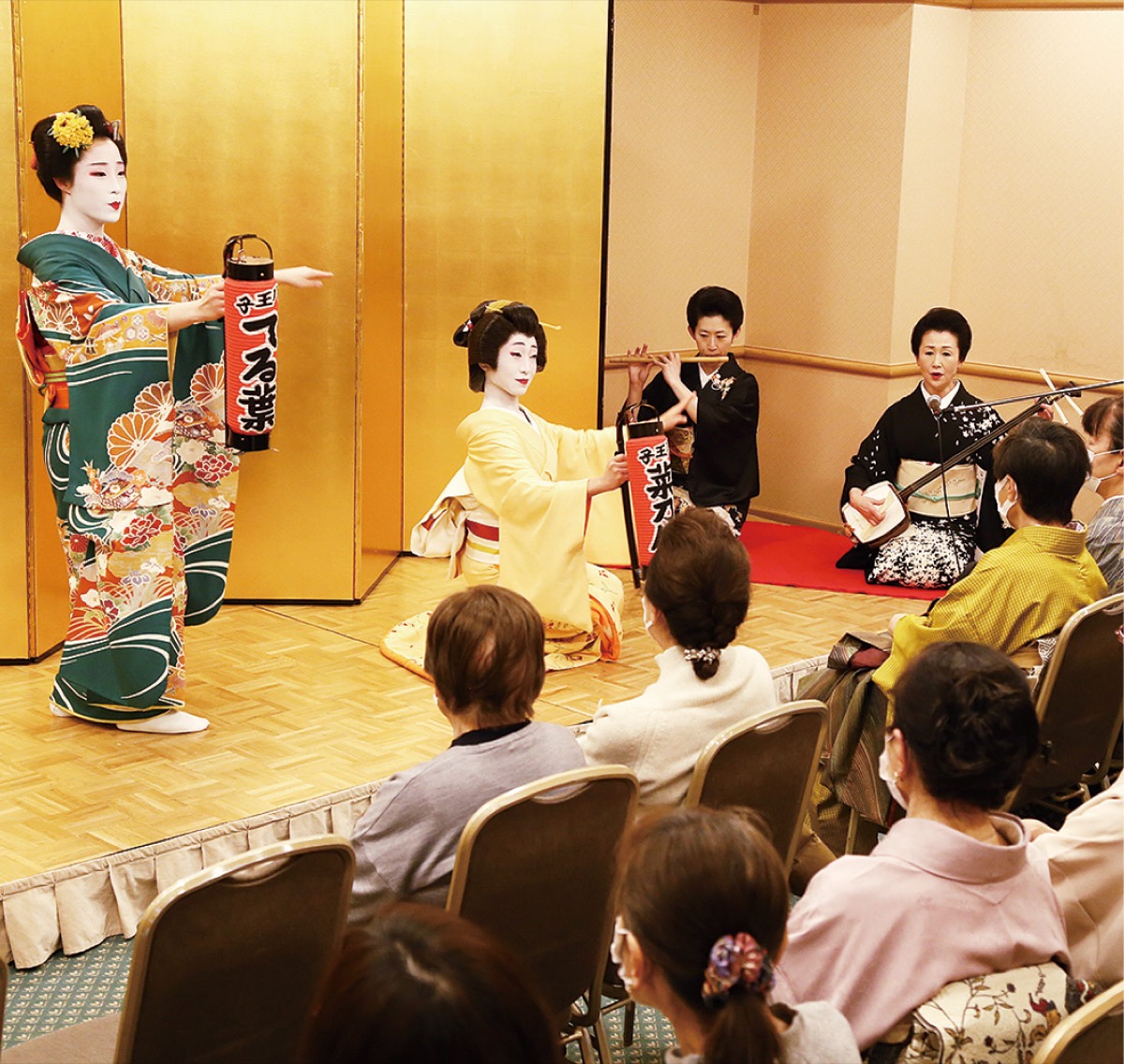 きものにしわ(八幡町)の190周年記念「報恩感謝の会」が先月23日から25日まで、京王プラザホテル八王子で行われた。連日催し物があり、八王子芸者衆も踊りと唄を披露した=写真。