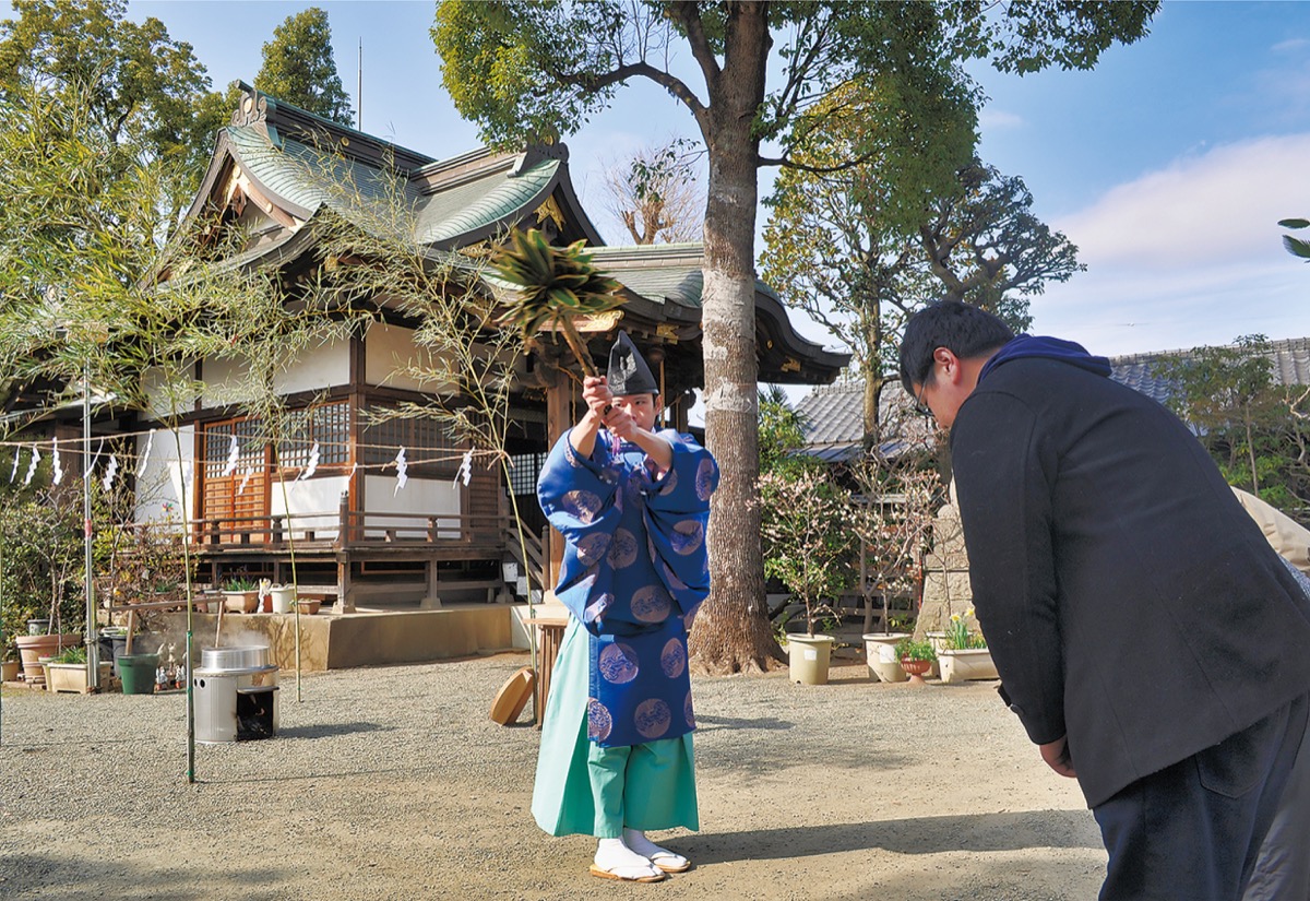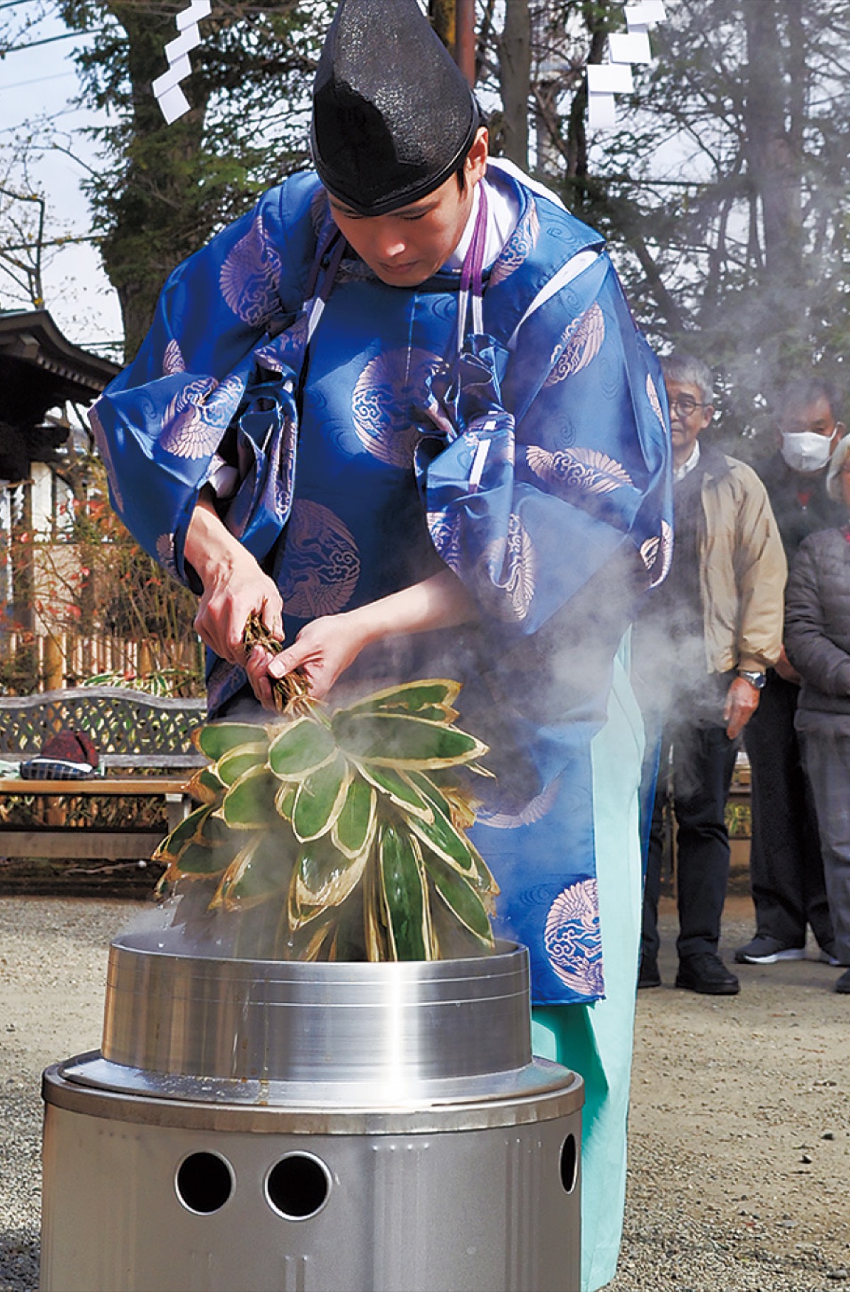 新型コロナウイルスの感染者が増えるなか、一刻も早い終息を願い、小門町の産千代稲荷(うぶちよいなり)神社で3月7日、湯立神事が執り行われた=上写真。小泉宜久宮司によると同神社で行うのは「前例のない」ことで、「様々催しが中止になり残念な思いをしている方も多いはず。何かできないか、と思い立ちました」と話した。