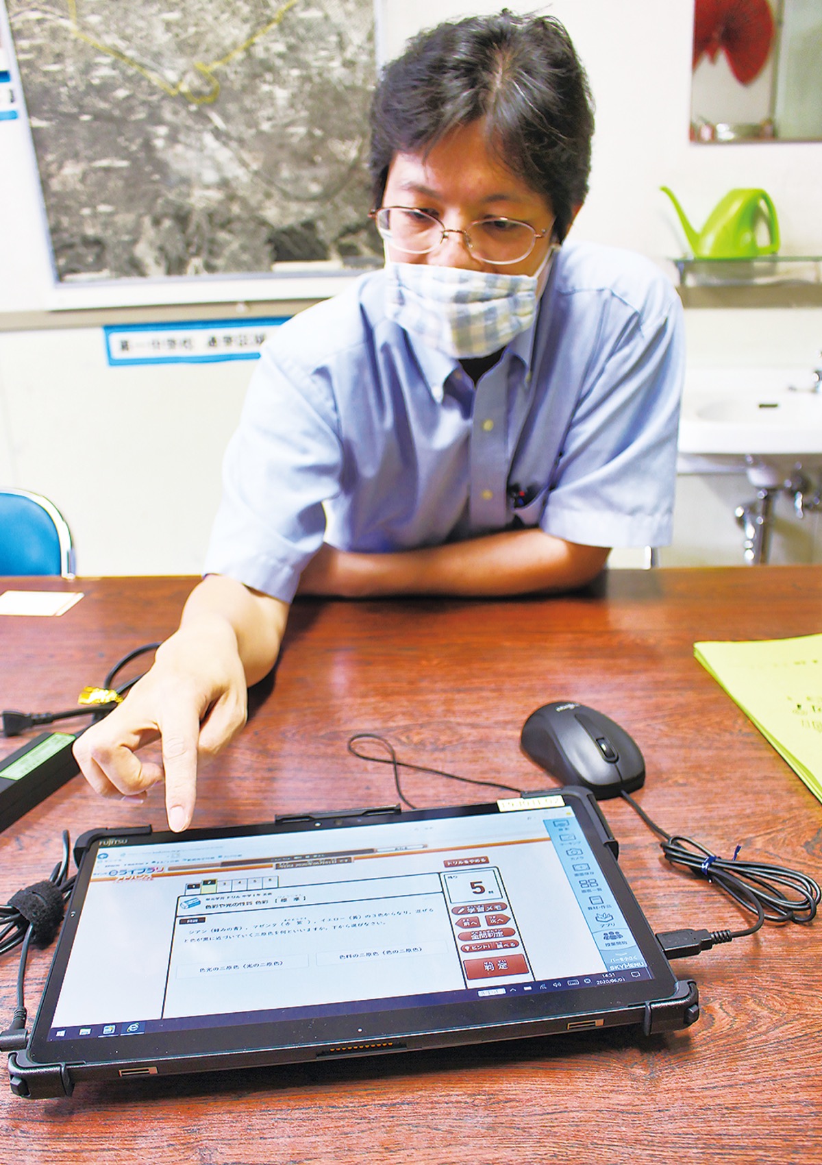 「画面上に出された質問に答える形でそれぞれの学力に応じた難易度で学ぶことができます」と同校の磯村陽一郎教諭。このシステムでは生徒一人ひとりの学習状況がひと目で分かることから、それを元に生徒、保護者と共に学習の進ちょくについて相談できるメリットもあったという。「ゲーム感覚でやっている子もいる。生徒たちが学習習慣を身につける方法として有効でしたね」