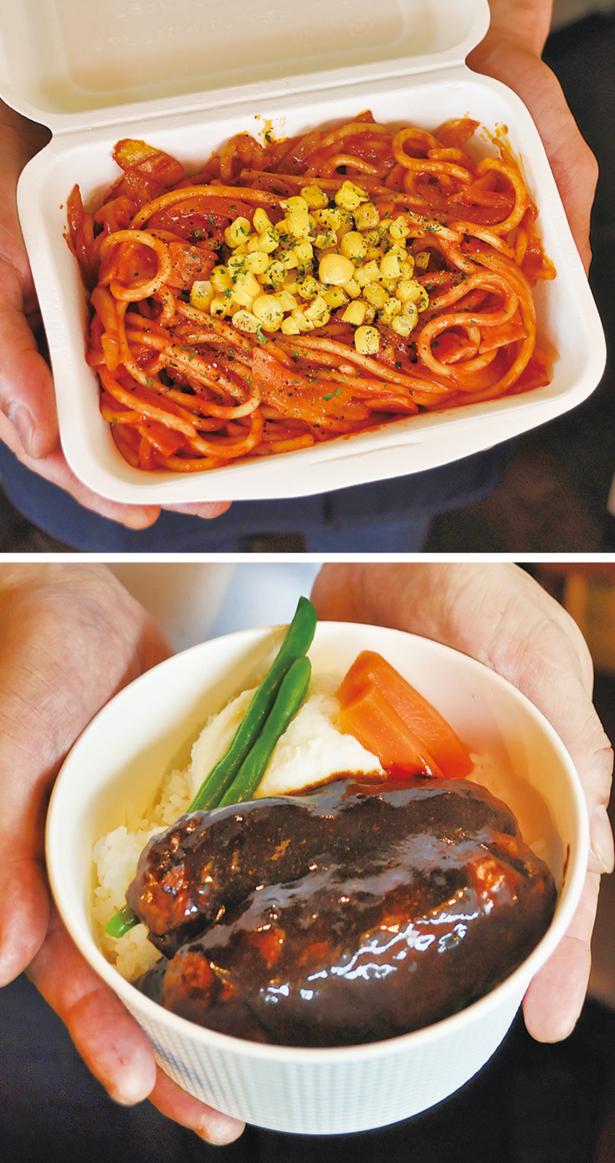 対象店舗は笑楽、カフェ5、デイラチッタ、ハンモッグ、ル・トン、ポカラ食堂、酒楽。カフェ5は定番のカレーライスやナポリタン(いずれも700円)、チーズケーキ(500円)などをテイクアウトメニューとして用意している。牛肉100%炭焼きハンバーグを提供するハンモッグはハンバーグ弁当(980円〜)などを揃える。
