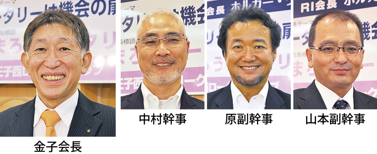 東京八王子西ロータリークラブ▼会長/金子裕二(※不動産管理業)▼幹事/中村晋也(有限会社ライズ)▼副幹事/原啓一郎(原自動車株式会社)▼副幹事/山本俊明(有限会社近郊地所)■発足/1966年■会員数/112人■今年度の主な事業/御陵参道清掃活動(11月)、タイのRCを通じて現地の小学校へ浄水器の寄付(3月)■会長テーマ「集まろうロータリー」●金子会長「(テーマについて)何をするには人が集まらないといけない。コミュニケーションを大事にしていきたい」