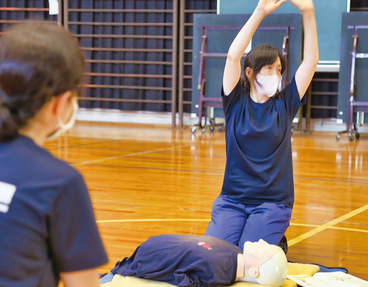 女性隊は本団付きの組織で14人が所属。消火活動ではなく、防災イベントなどでの市民への救命講習の指導が活動の中心となる。全員がすでに「応急手当及員」の資格を持っているが、今年度から八王子消防署の体制が整ったことから、より上位の「指導員」を目指せるようになったという。早ければ10月にも実施される試験に向け、毎週土曜日に集まって練習に励んでいる。