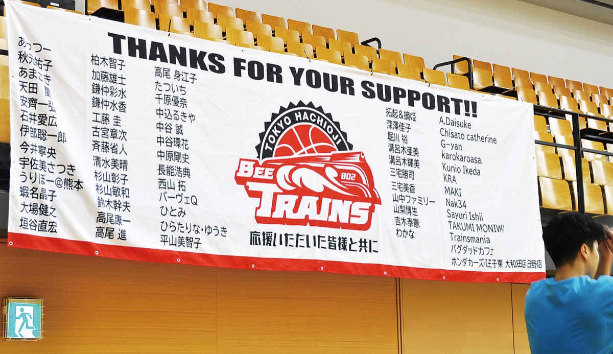 練習の際、チームは横断幕を掲げている。今年2月、チームが存続の危機に陥りクラウドファンディング(資金調達)をした際に、賛同した人たちの名前が入ったもの。感謝の気持ちを忘れずにプレーするためという。