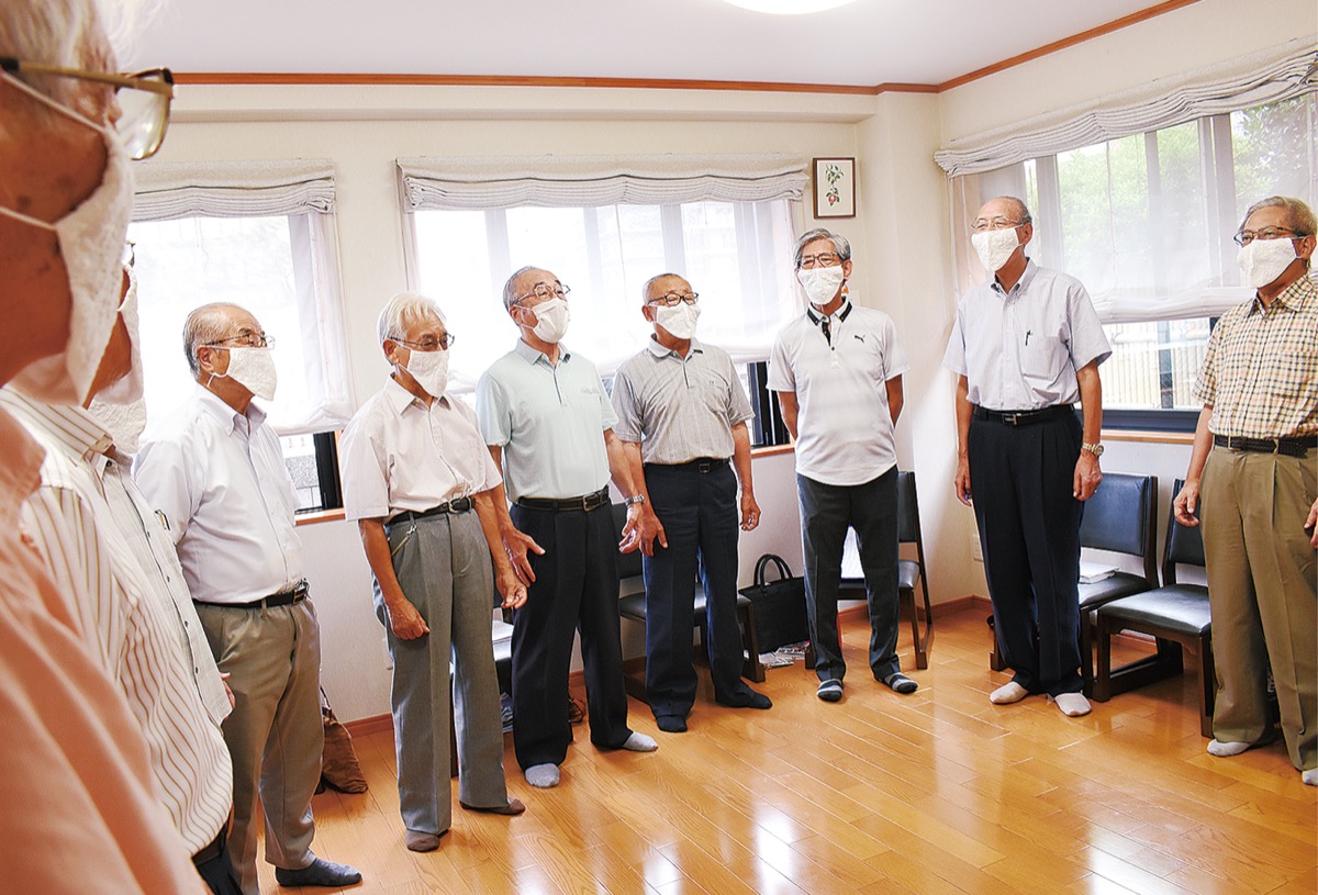 平均年齢82歳の男声三部合唱団「シニアダンディーズ」は、今年3月より新型コロナの影響で活動を休止していたが8月31日に練習を再開した。休止直前まで準備を進めていた、結成10周年の記念CDを録音することをめざす。
