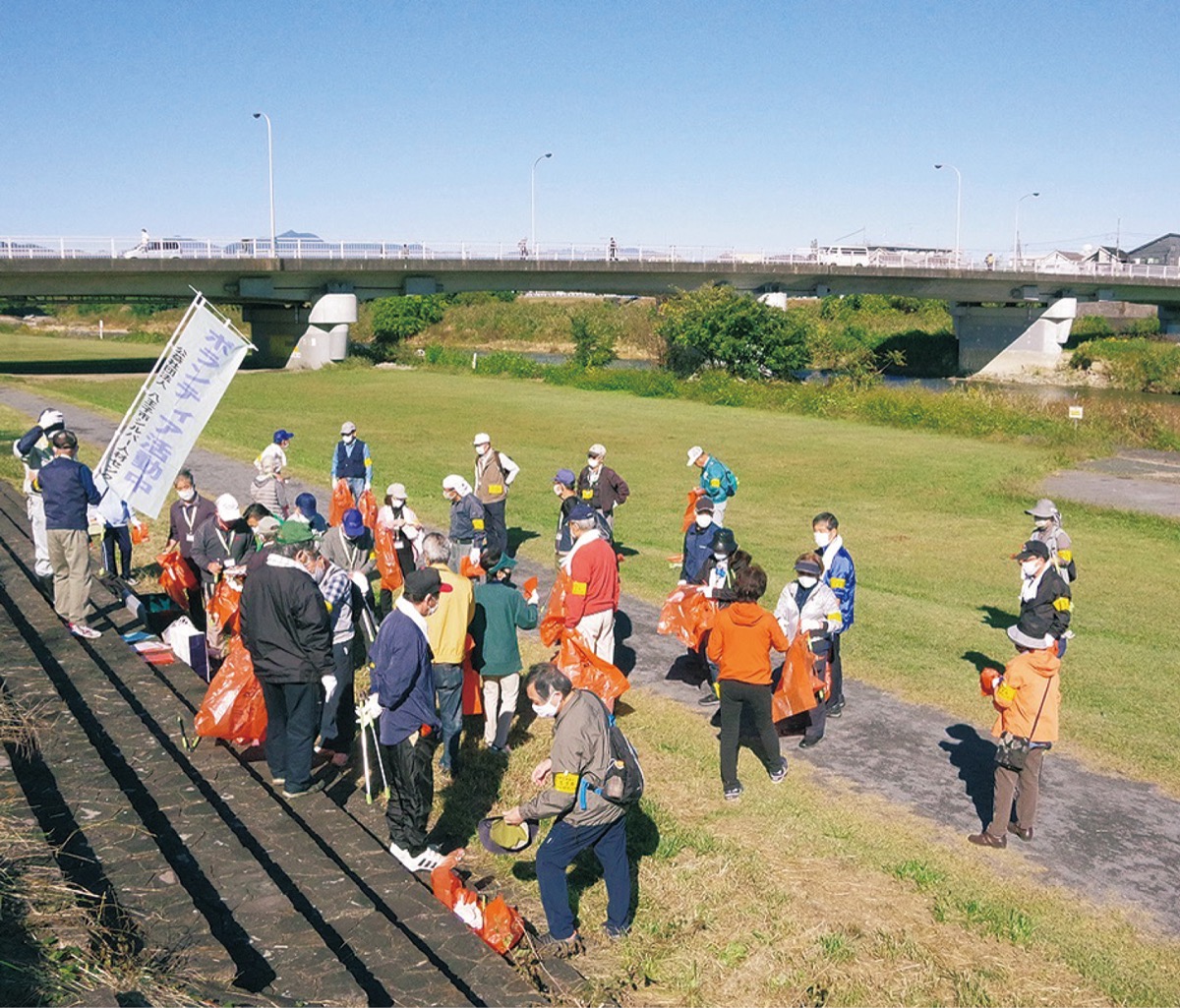 60歳以上の市民に就労案内をする、公益社団法人八王子市シルバー人材センター(大横町)が10月25日、鶴巻橋から浅川橋までの浅川河川敷で清掃活動を行った=提供写真。