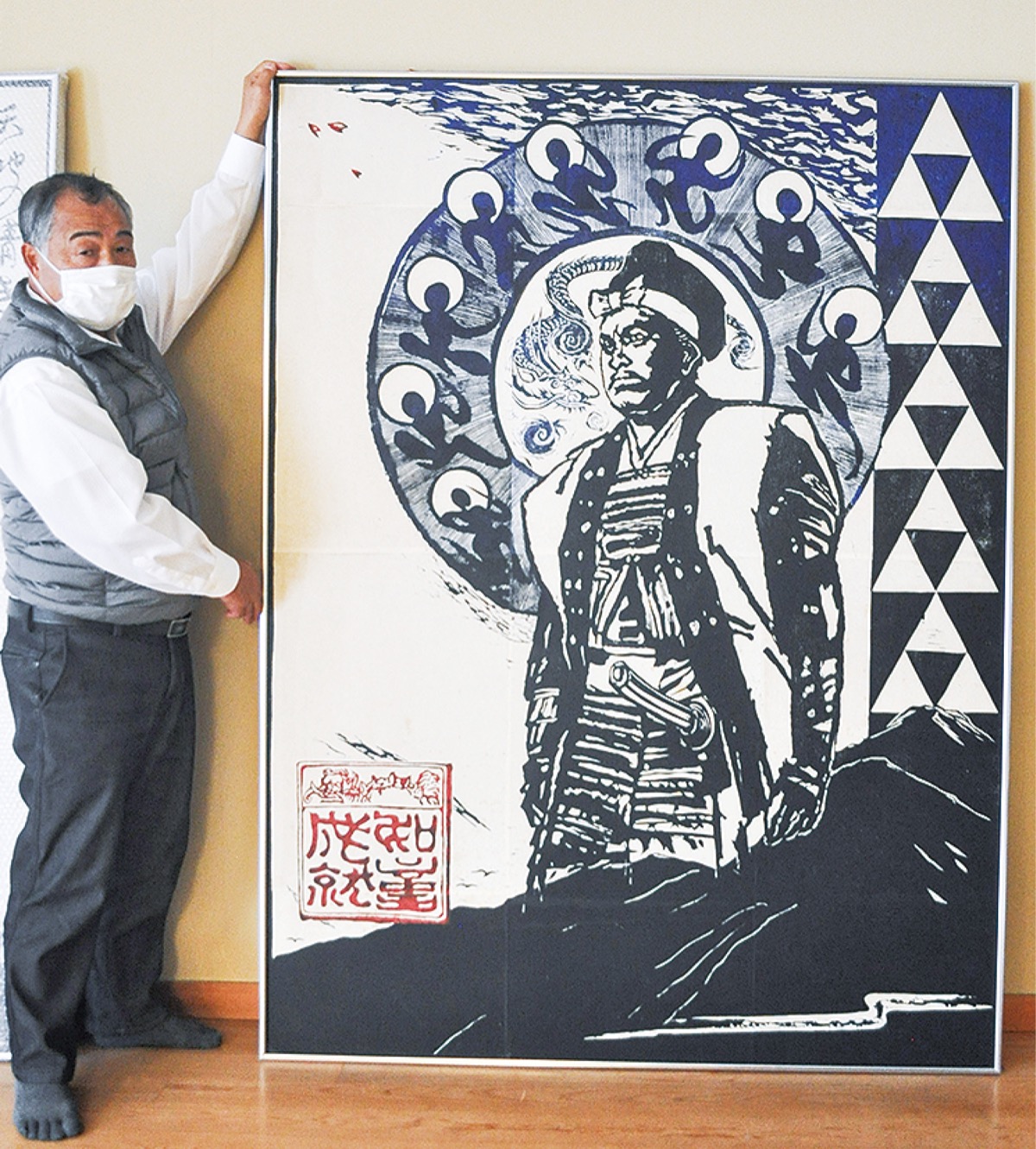 会場には写真だけでなく、版画の大作も展示される。版画はめじろ台在住の元小学校教員、大塚雅春さん(76)によるもの。作品は滝山城主の「北条氏照」とその妻「比佐御前」の2作。