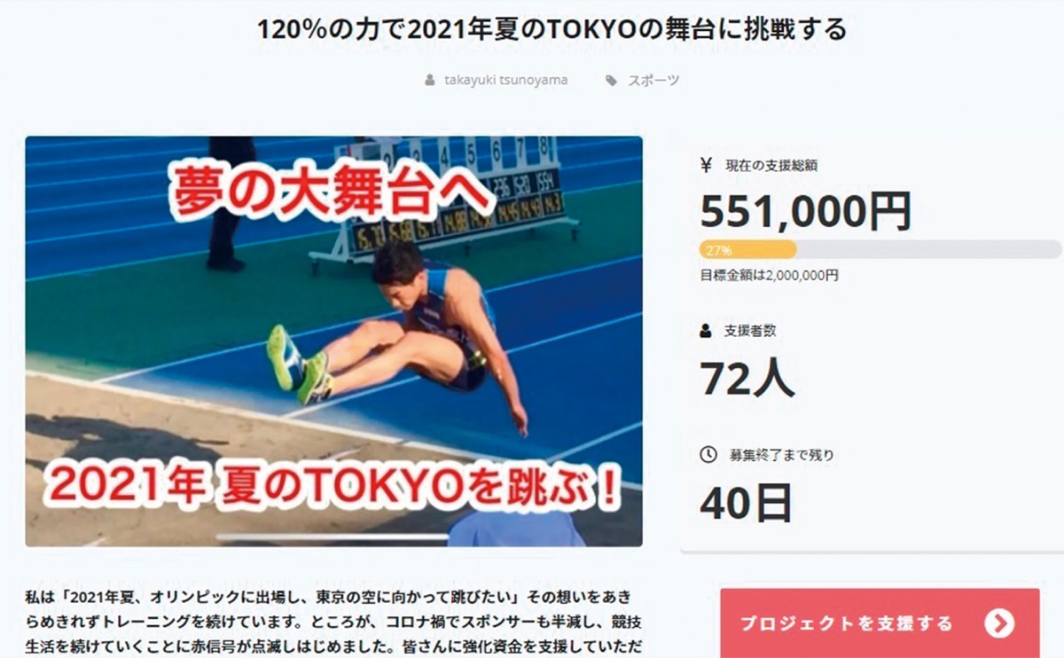 市内を拠点に活動する三段跳びプロアスリートの角山(つのやま)貴之さんが、クラウドファンディングによる資金調達をしている。期間は今年末まで。