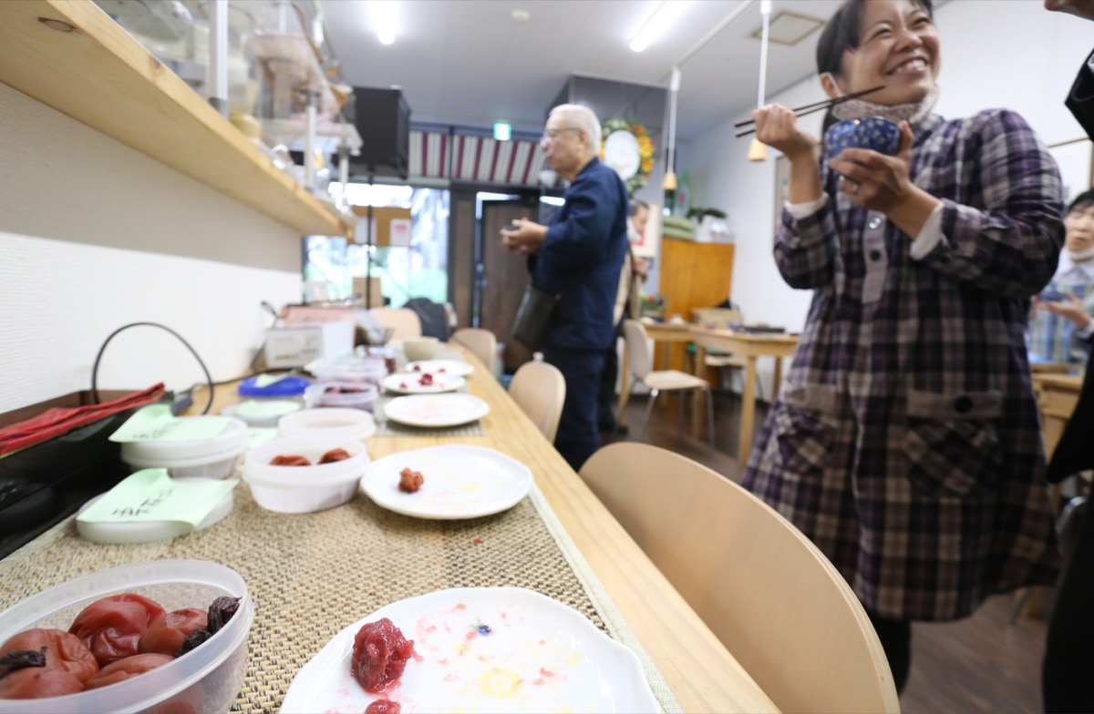 地域サロン「スーヴニールの森」(打越町)で11月26日、手製の梅干しを試食しあう企画「梅干し自慢」が行われた=写真。