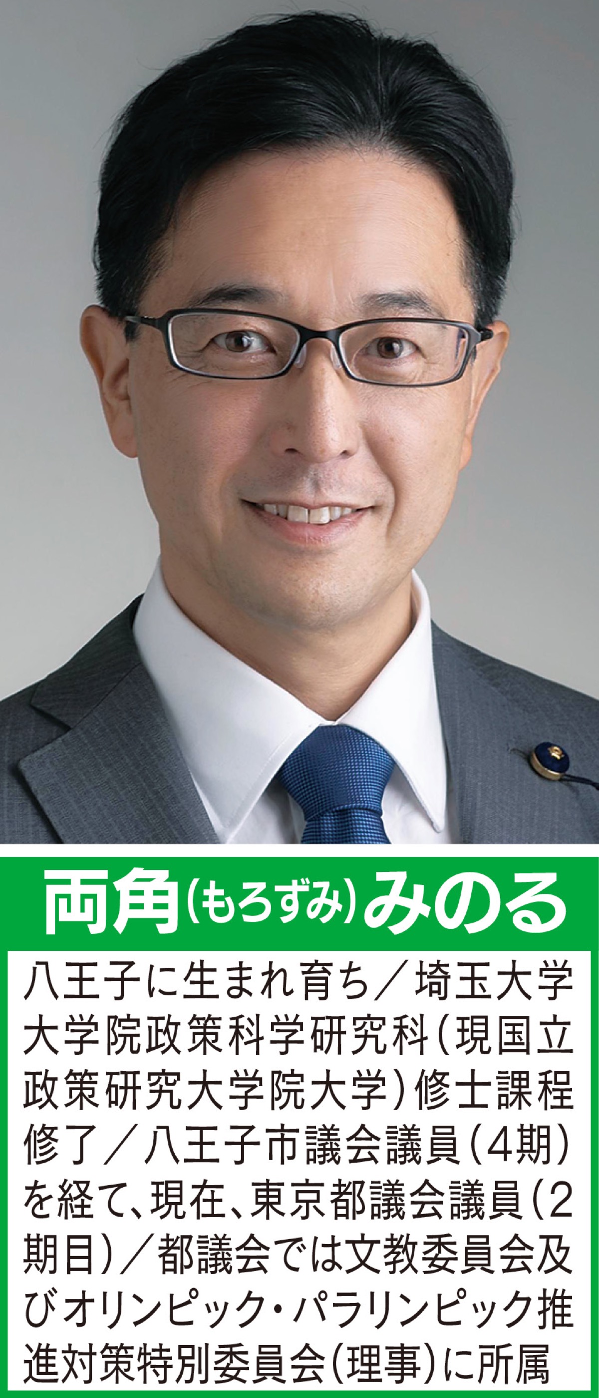 東京都議会議員 両角(もろずみ)みのる