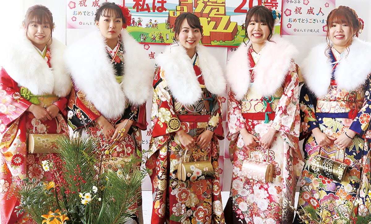 新型コロナウイルス感染拡大を鑑み、八王子市は1月11日に予定していたオリンパスホール八王子での成人式の会場開催を中止し、市長メッセージなどを動画配信した。一方、市内7施設に写真撮影用スポットを設置した。例年、式典会場近くの八王子駅南口は新成人が大勢集まるが、密にならぬように呼び掛けたこともあり、例年に比べて晴れ着姿の人はまばらだった。