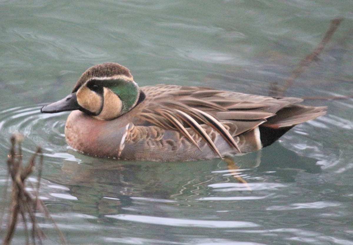 南大沢駅から徒歩20分の長池公園の築池に絶滅危惧種の渡鳥、トモエガモが現れ、野鳥愛好家の話題となっている。