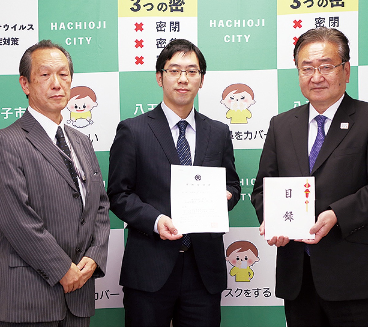 3月3日に市長公室で受領式が行われた。石森孝志市長は「健康を守ってくれている医療従事者の皆さんが、一時でもホッとしてもらえる」と感謝の言葉を述べた。