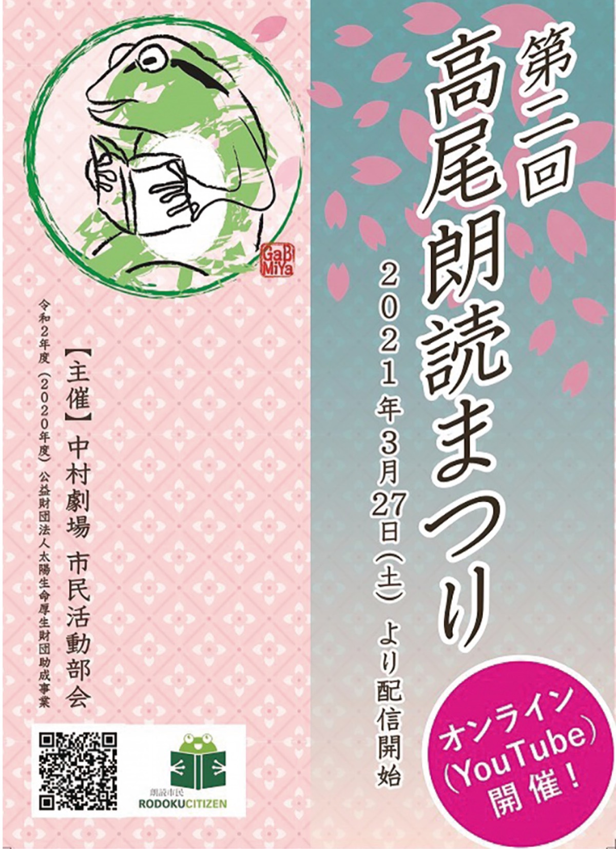 中村代表は「朗読を聞くもよし、字幕を見ながら、ご自身が出演している気持ちで語ってもよし、です」と笑顔をみせ、「このまつりのテーマは声でつながる。多くの方に朗読を楽しんでもらえればと思います」と話している。チャンネルは「高尾朗読まつり」で検索できる。