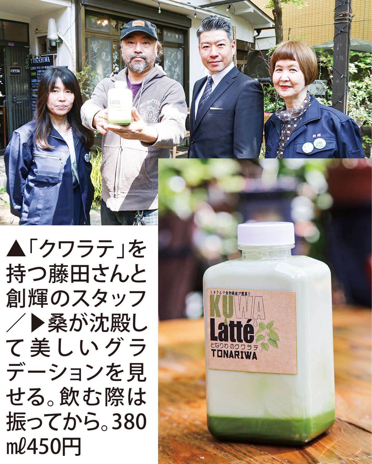 古民家ダイニング「となりわ」(横山町)で新たにテイクアウト商品「となりわのクワラテ」が登場した。桑茶を販売する創輝(株)(新町)の桑の葉パウダーを使っており、同社では市内企業・店舗と60件以上をコラボレーション。今回の新商品もそのひとつ。