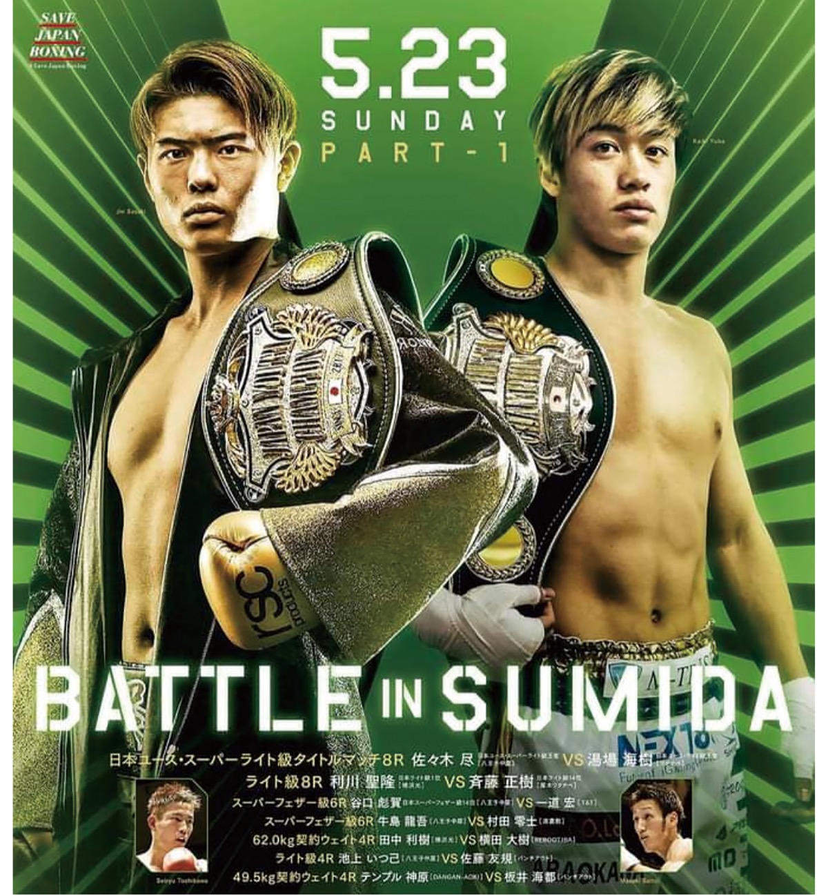 佐々木選手がメインイベントで対戦する相手は1階級下の日本ユースライト級王者の湯場海樹選手。ともにユース王者の対戦として注目される。佐々木選手にとっては初の防衛戦でもある。詳細は同ジム【電話】042・622・7222