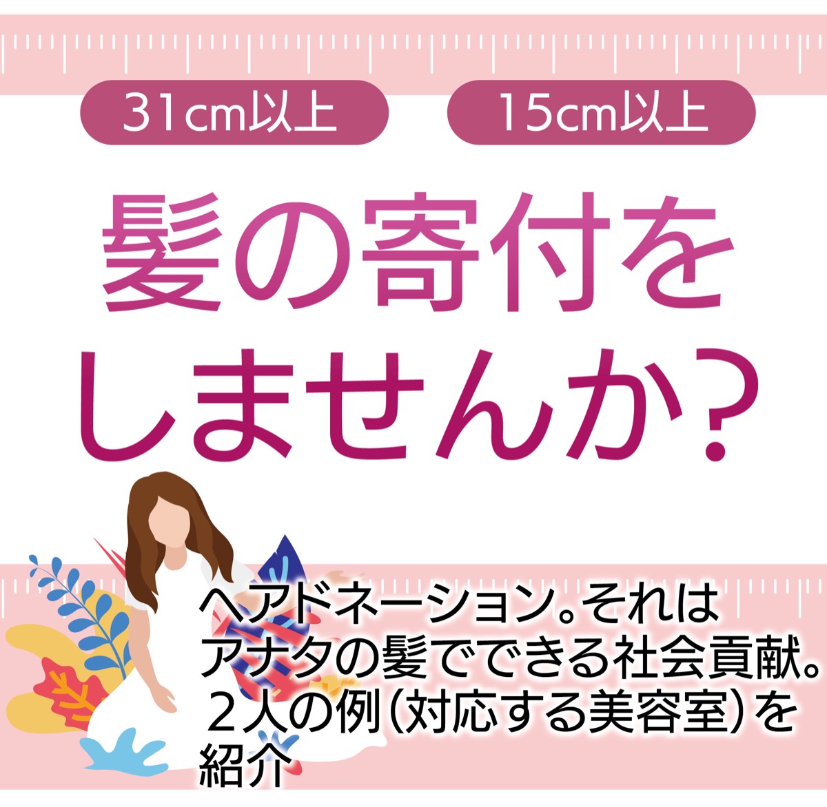 団体として「31cm以上」を受付けているジャーダック(市内で18サロンが賛同)と、「15cm以上」で受付ける「つな髪」(市内3サロンが認定サポート店/緊急事態宣言中につき活動を一時休止)などがある。