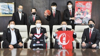 プロバスケB3東京八王子ビートレインズは6月30日、八王子市役所を訪れ石森孝志市長に2020-21シーズンの結果報告をした。