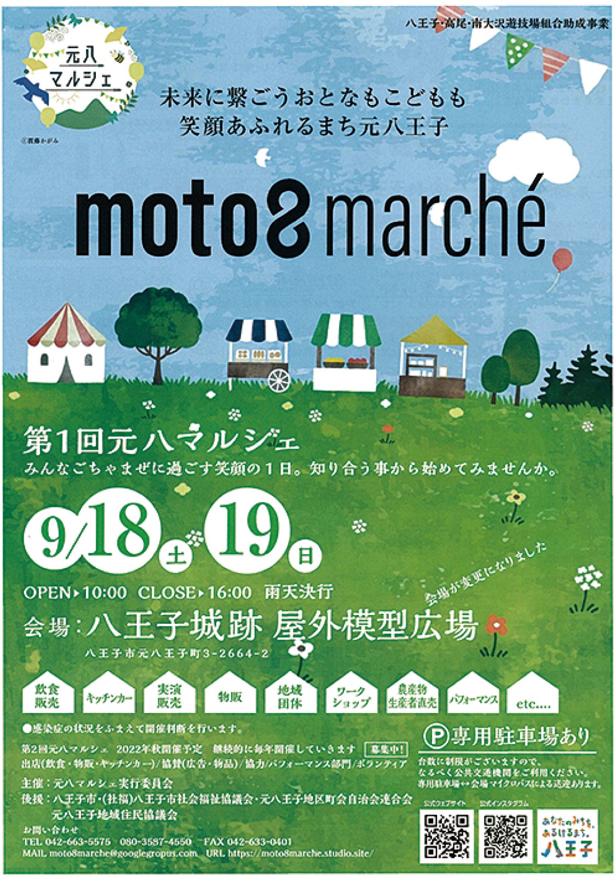 元八王子地区のイベント「第1回元八マルシェ」が9月18日(土)、19日(日)に八王子城跡屋外模型広場(元八王子町)で開催される。
